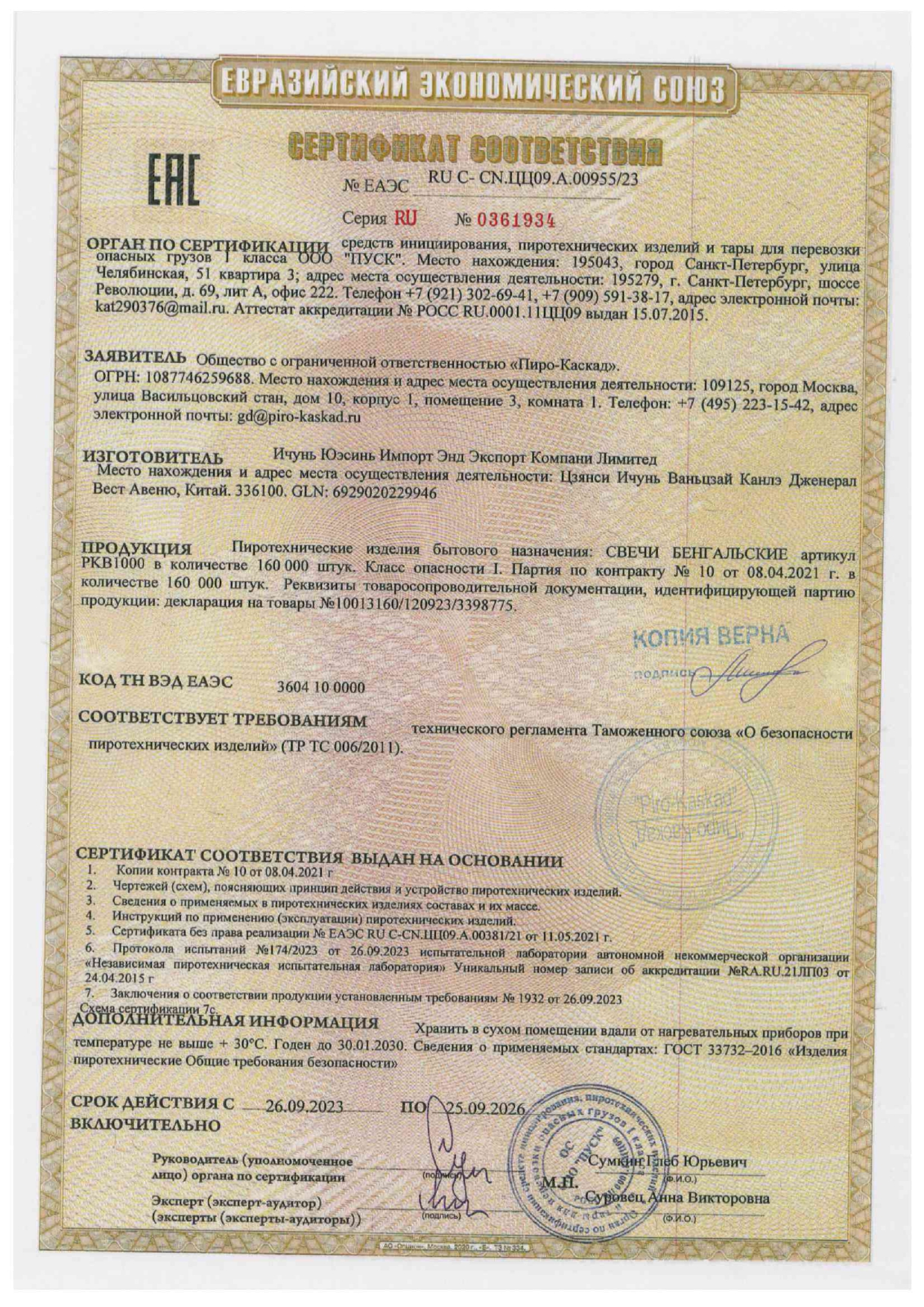 - К сожалению, мы не осуществляем доставку пиротехники в Калининградскую область, а также за пределы Российской Федерации.
