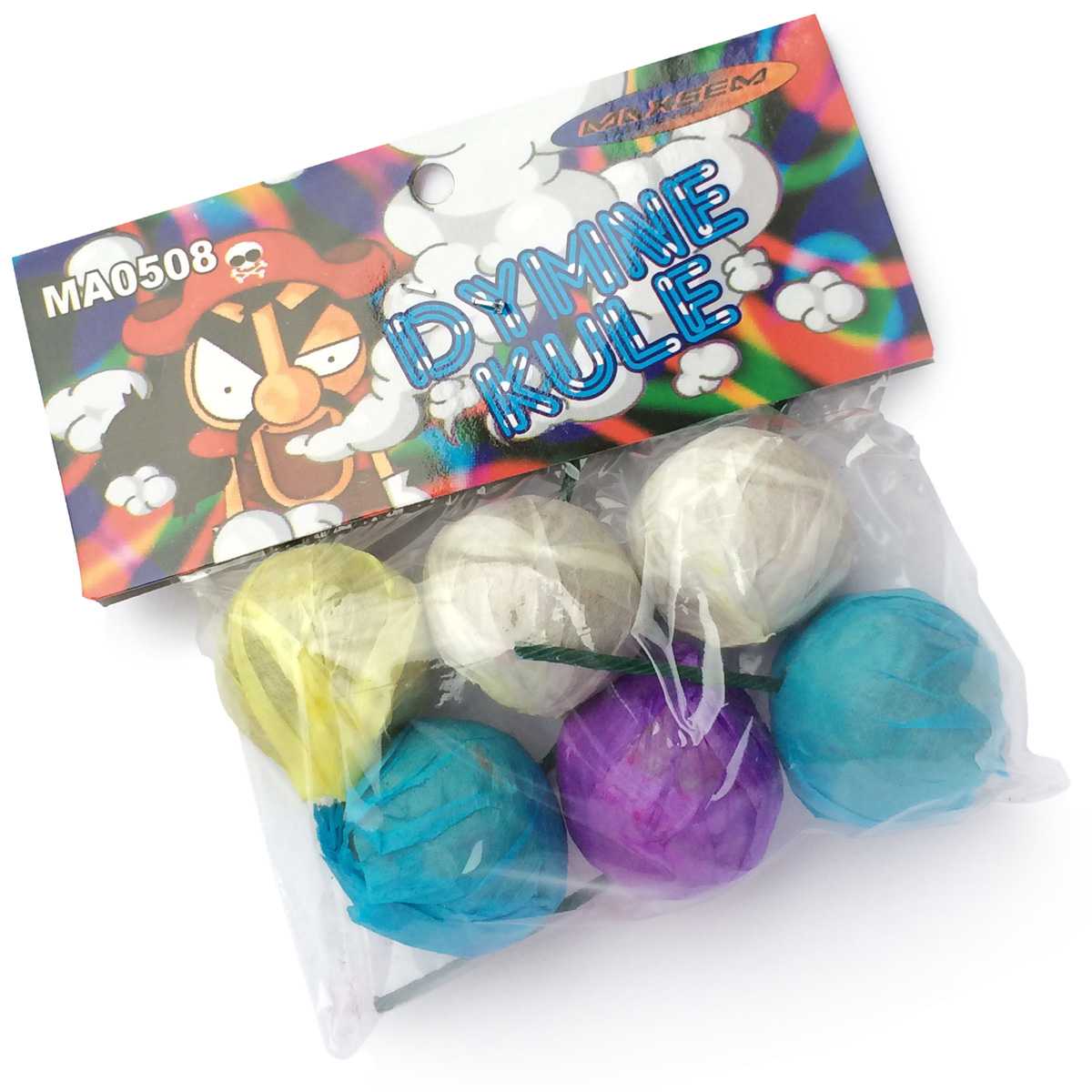 Небольшие дымовые шарики Dymne Kule польского производства вряд ли подойдут для фотосессии, т.к. дают совсем небольшое количество цветного дыма. Среднее время работы - 5-7 секунд, в упаковке - 6 шариков с дымом различного цвета. Обратите внимание, что шарики не взрываются, а только дымят! Таким образом, это забавное и безопасное изделие, в отличии от практически всех прочих петард.