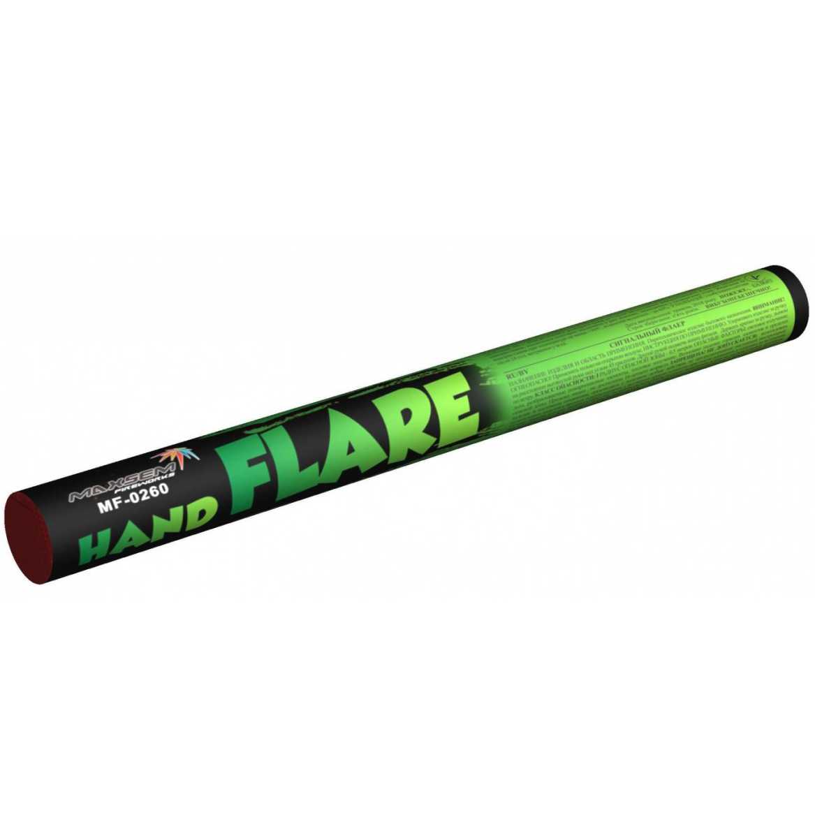 Факел пиротехнический (фальшфейер, фаер) зеленого огня MF-0260G / HAND FLARE (100 cек.)
