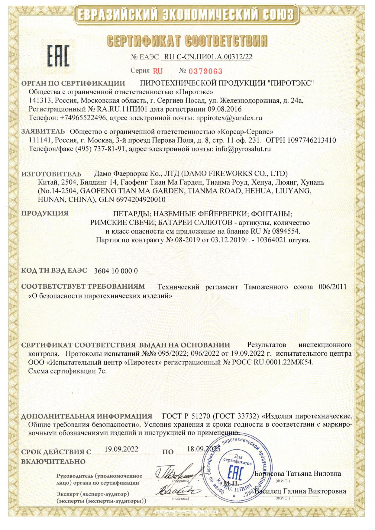 Магазин фейерверков ББ-Салют предоставляет гарантию на весь ассортимент интернет-магазина и розничных магазинов ББ-Салют! Мы торгуем пиротехникой самых лучших, проверенных торговых марок. Все изделия сертифицированы для продажи на территории России и имеют актуальный срок годности.