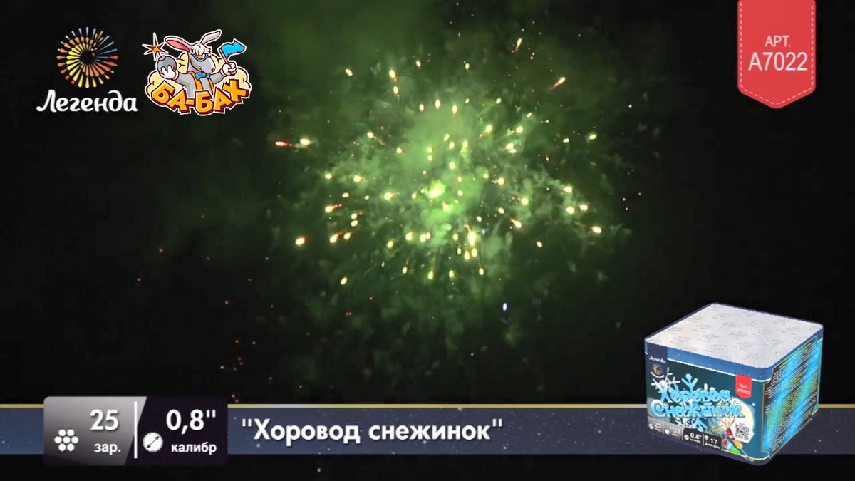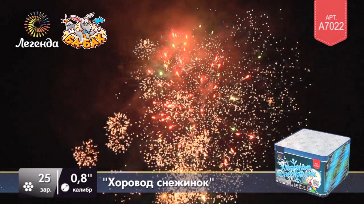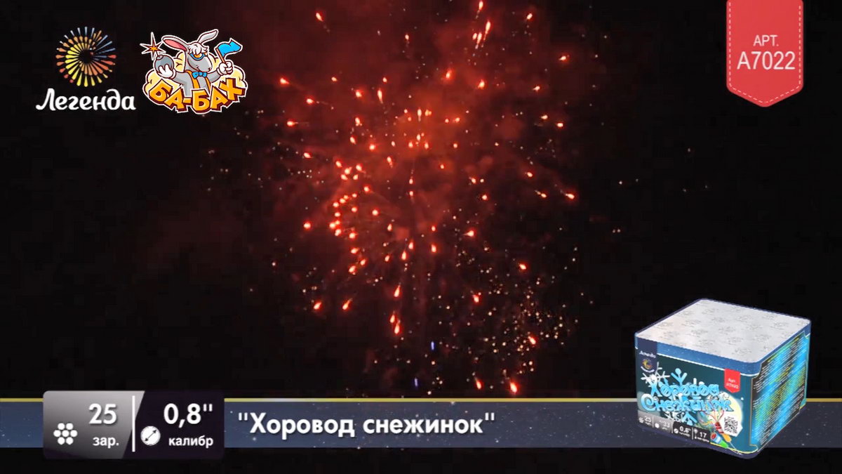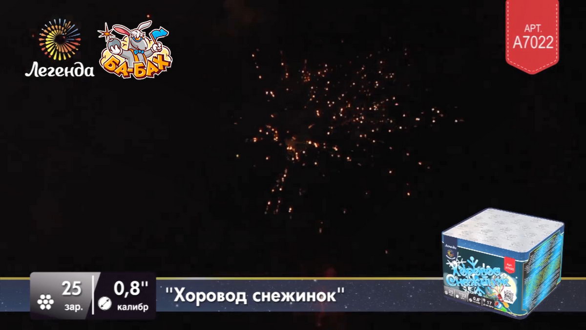 Вдохновленные снежным Чудом пиротехники "Русского фейерверка", создали салют "Хоровод снежинок". Чередование спецэффектов в нем напоминает удивительный зимний танец ледяных красавиц.