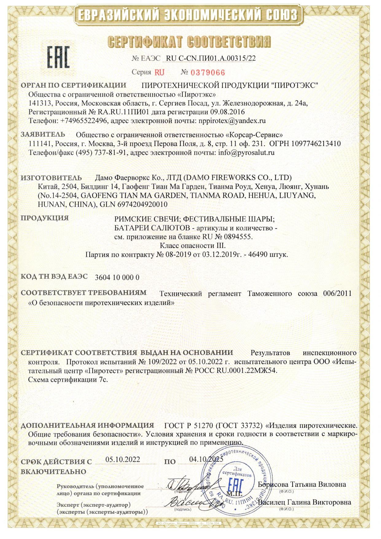 Магазин фейерверков ББ-Салют предоставляет гарантию на весь ассортимент интернет-магазина и розничных магазинов ББ-Салют! Мы торгуем пиротехникой самых лучших, проверенных торговых марок. Все изделия сертифицированы для продажи на территории России и имеют актуальный срок годности.