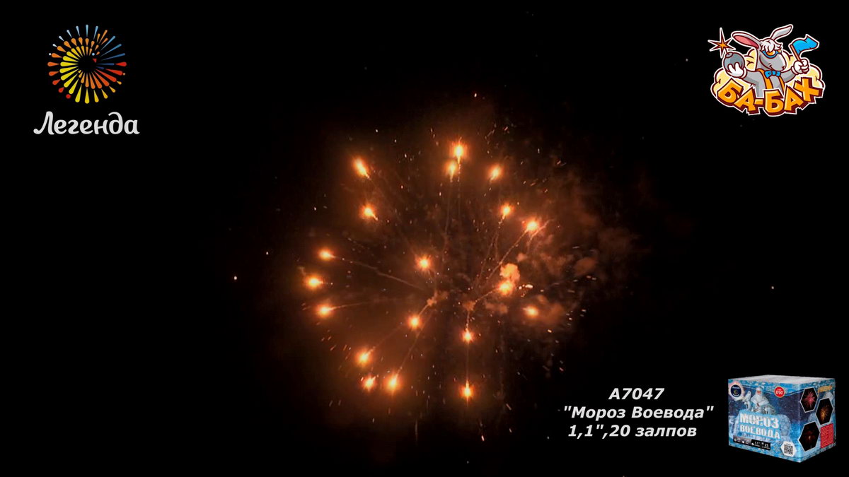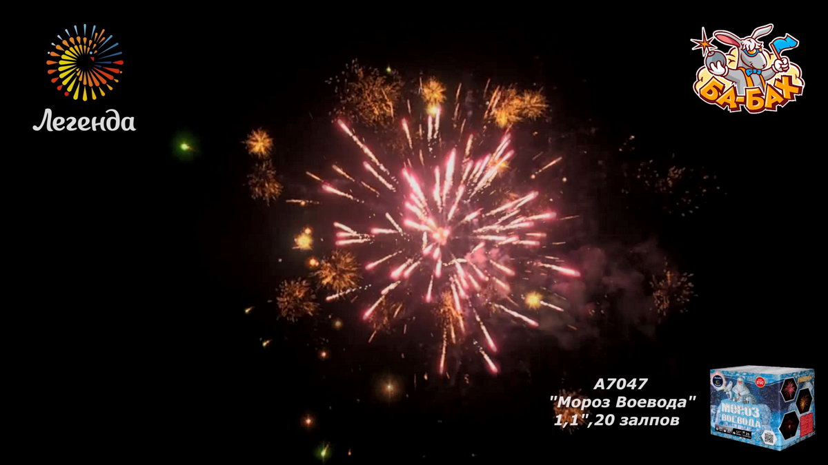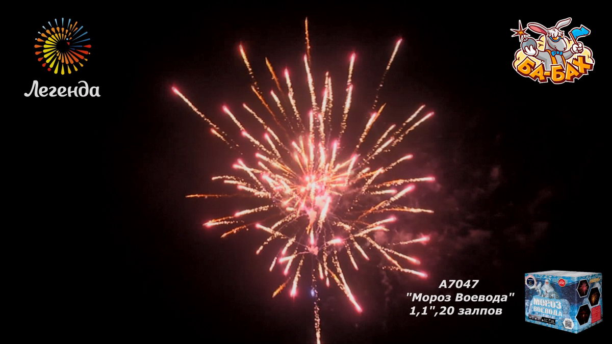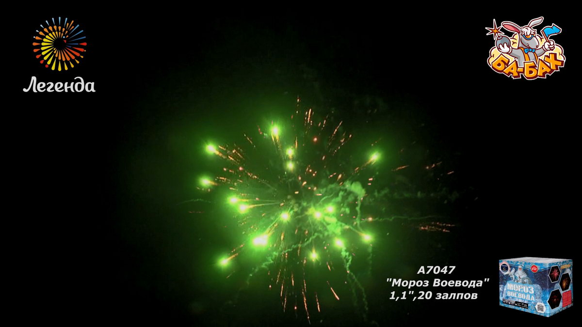 Взмывающие ввысь зеленые звезды вспыхивают великолепными зелеными георгинами, охваченными золотым сиянием. Фонтан пурпурных огней превращается в море трещащих золотых хризантем. Следом в небе расцветают букеты желтых георгинов, сопровождающихся трещащим мерцанием. И завершает огненную симфонию в честь Мороза-воеводы одновременный залп нескольких зеленых комет, которые раскрываются прекрасными, красными ивами в пурпурном сиянии.