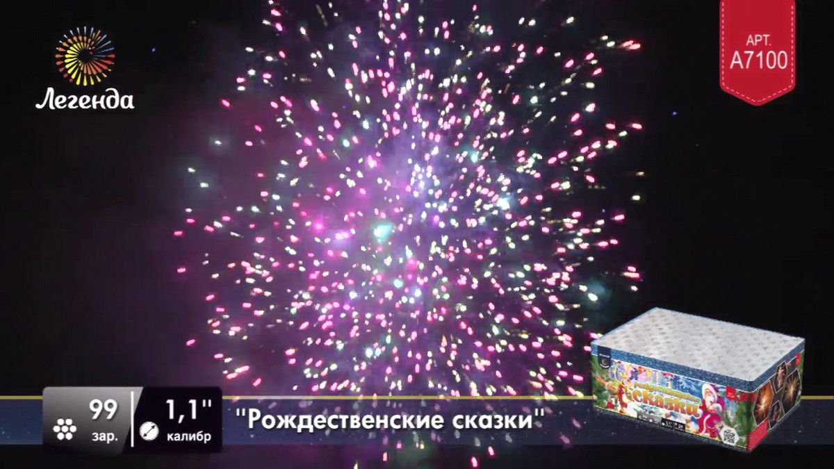 Рождественские сказки испокон веков рассказывали в кругу близких людей, в праздничной и уютной обстановке. Они оставляли в памяти послевкусие волшебства и веры в чудеса. Под стать рождественским сказкам этот большой и очень разнообразный по эффектам фейерверк!