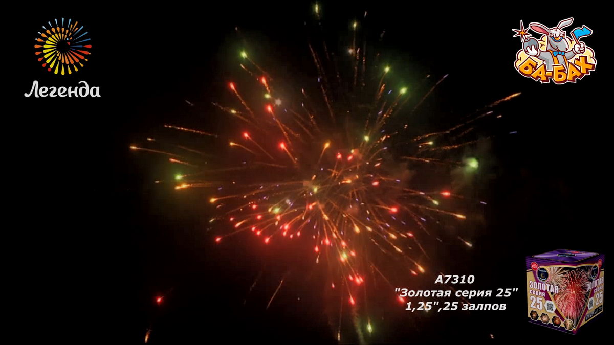 1. Синие звезды раскрываются золотыми хризантемами, переходящими в серебряное мерцание с красными, синими, желтыми и зелеными звездами. 2. В финале одновременный залп нескольких зарядов.
