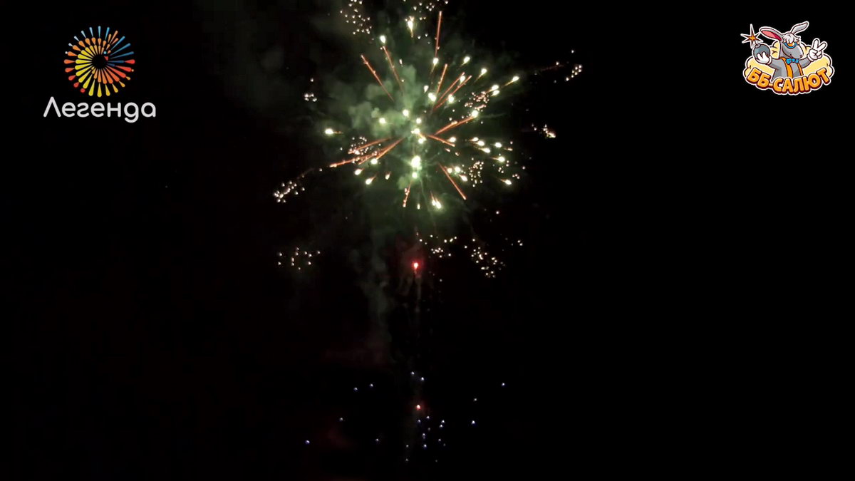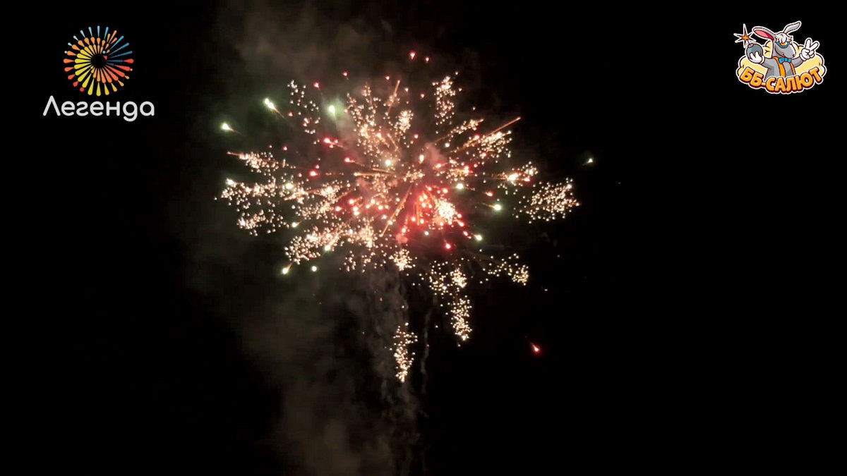 1. Зеленые звезды раскрываются серебряными коронами с красными и пурпурными звездами на острие. 2. Красные звезды раскрываются золотыми стрелами с серебряным мерцанием на острие в зеленых и синих жемчужинах. 3. Финал: одновременный залп красных звезд раскрывается трещащей мерцающей короной в красном мерцании.
