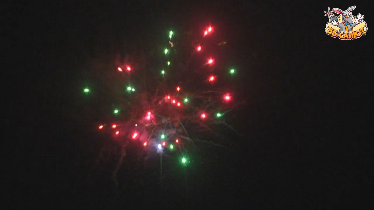 1. Красные звезды с треском. 2. Красный георгин на фоне белых мерцаний. 3. Зеленые звезды с треском. 4. Зеленые звезды, мерцающие на фоне дождя. 5. Красные, зеленые, синие жемчужины с треском. 6. Фиолетовый георгин на фоне белого стробоскопа. 7. Красные, зеленые, синие и желтые жемчужины в сопровождении треска. 8. Красные мерцания на фоне дождя. 9. Серебряные кокосы на фоне дождя.