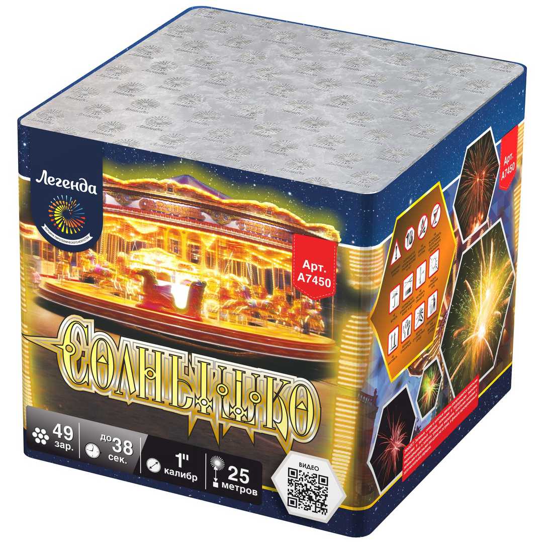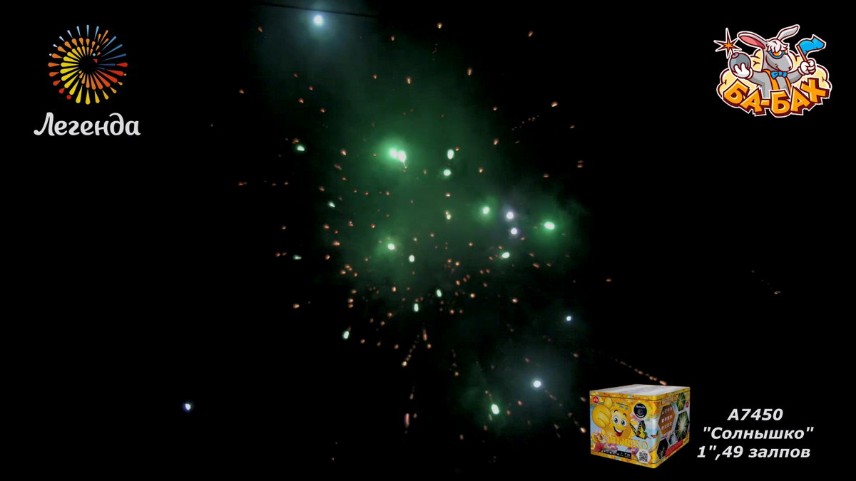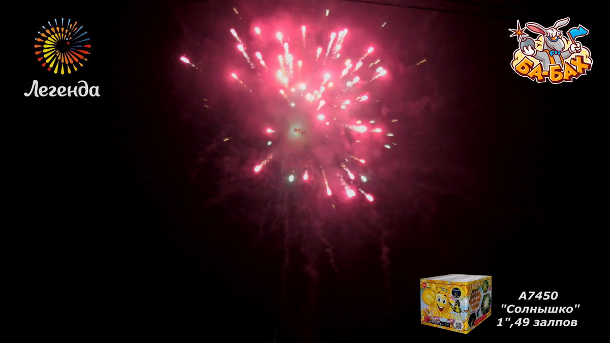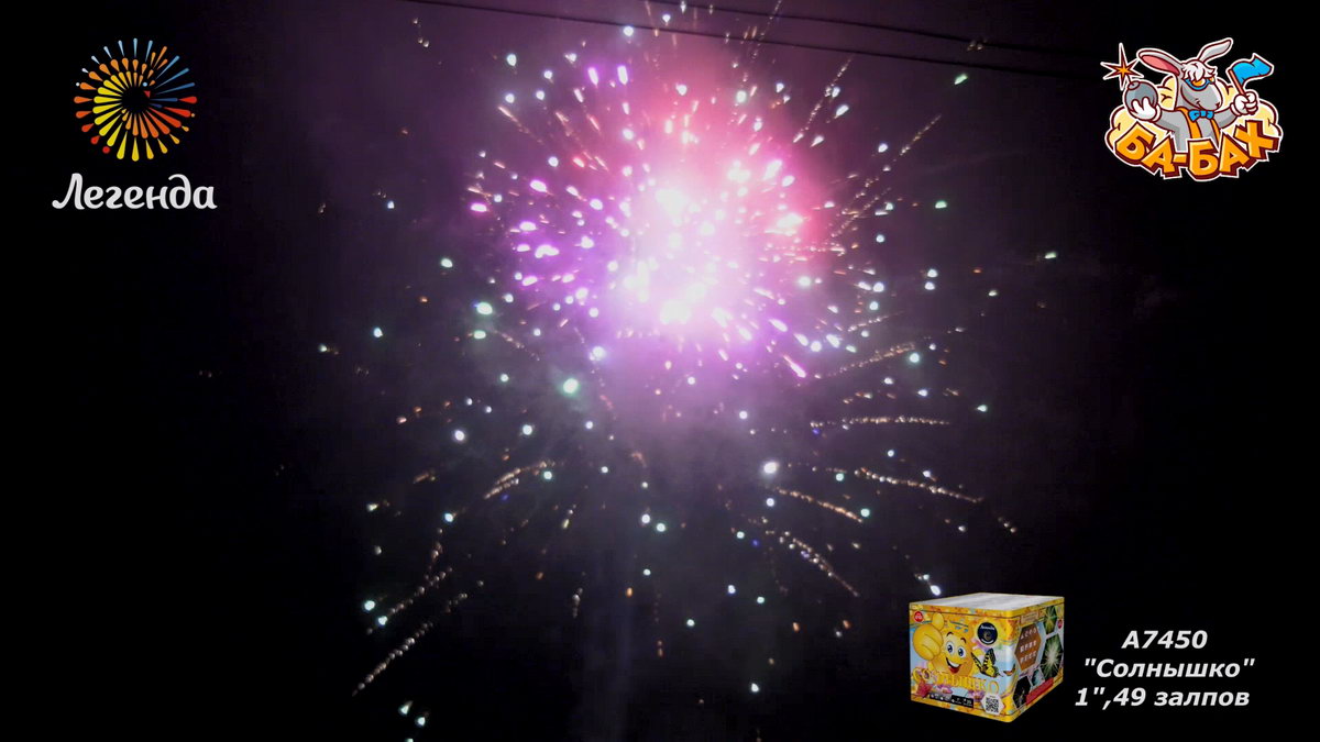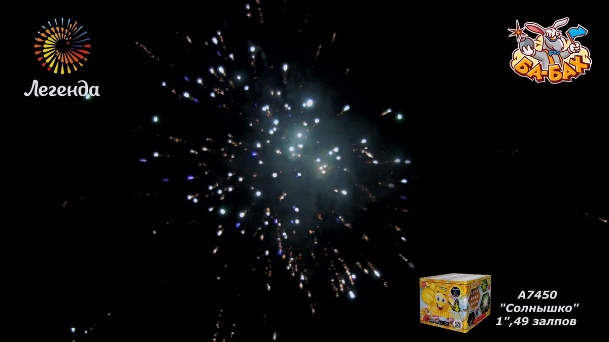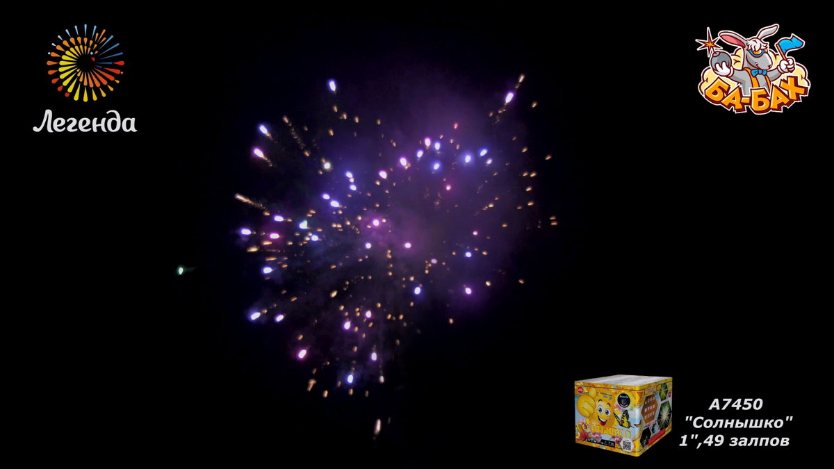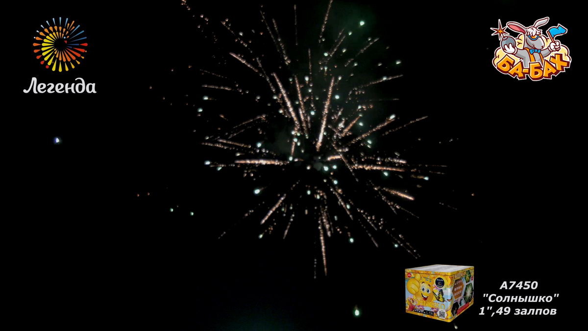 Фейерверк "Солнышко", основной мотив которого - золото, залпами отправляет в небо зеленые, золотые и ярко-синие звезды. Они же раз за разом раскрываются пышными бутонами цвета солнца, травы и королевского пурпура, сбрасывают листву с треском и мерцанием, раз за разом расходясь золотыми волнами, с гребней которых с треском и мерцанием срываются алые и золотые звезды. И завершает солнечное великолепие залп нескольких зарядов, напоследок украшающих небо россыпью серебряных искр.