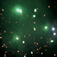 1. Зеленые, синие и золотые звезды раскрываются золотыми кокосами в зеленых пионах, зелеными и пурпурными пионами, переходящими в золотое трещащее мерцание, золотыми волнами с зелеными и красными звездами на острие. 2. В финале одновременный залп нескольких зарядов.