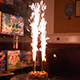 - Другая разновидность холодных фонтанов - фонтаны в торт. Эти миниатюрные изделия снабжены шипом для втыкания в праздничный торт. Фитиля у них нет - поджигать нужно конец фонтана, белую бумажную наклейку. Обратите внимание, что даже в таких мини-фонтанах помимо снопа холодных искр есть открытое пламя - высотой примерно 5-10 см.
