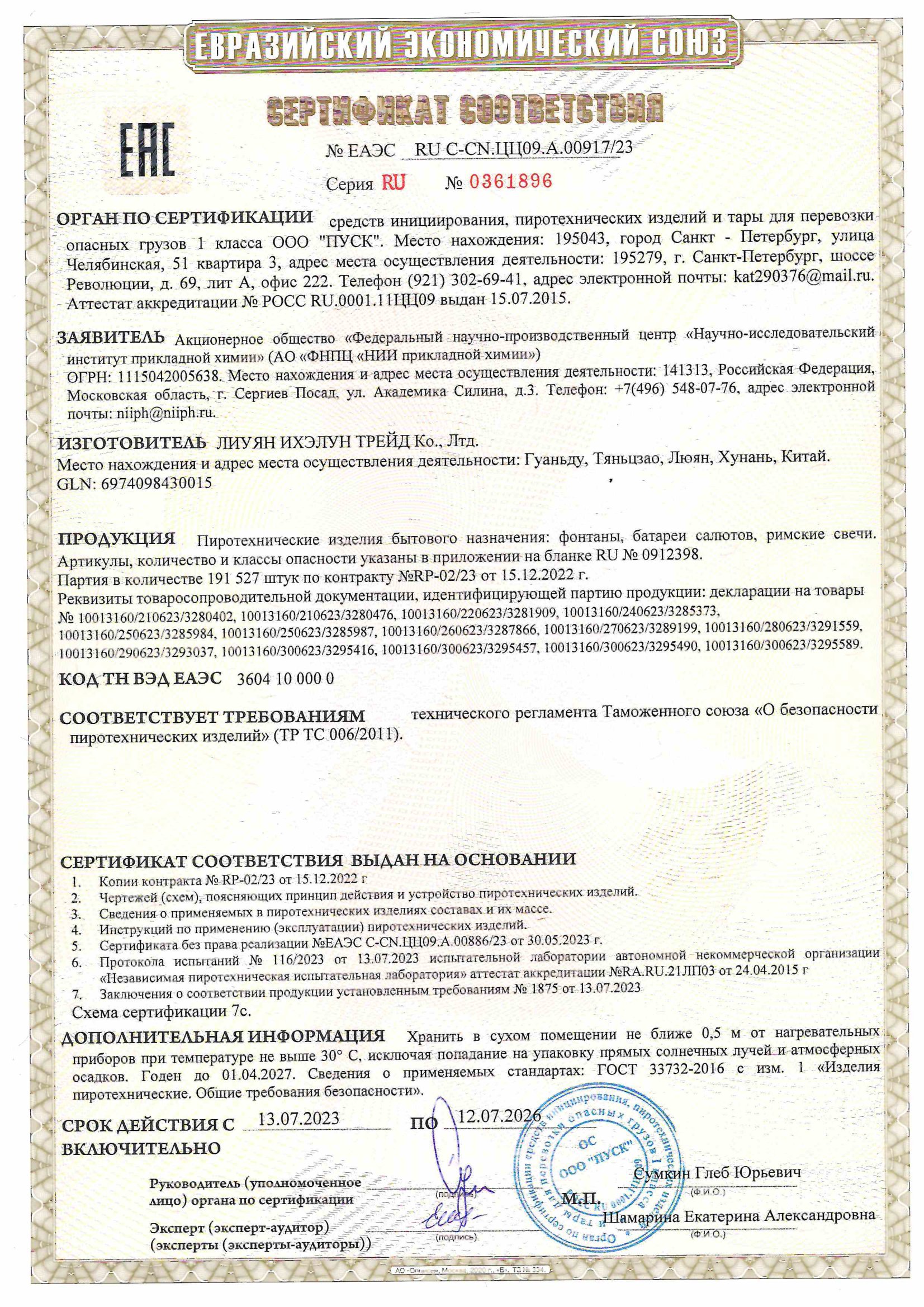 - Обратите внимание, что при покупке фейерверка Вы несете полную ответственность за соблюдение правил хранения, техники безопасности и инструкции по запуску изделия!