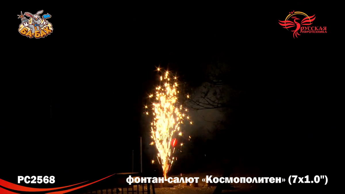 Фейерверк Космополитен состоит из двух уровней эффектов. Сначала огненный фонтан высотой до 5 метров порождает поток серебряных искр. Он переходит в трещащие серебряные искры с красными и зелеными огоньками, возникающими хаотично. Постепенно фонтан угасает и тут же порождает другой более мощный и сильный. На высоту 30 метров вылетают ракеты и в темноте ночного неба появляются разлетающиеся во все стороны серебряные огоньки. Затем появляются букеты из красных и зеленых мерцающих огней, тающих с треском. Финальный аккорд - разлетающиеся серебряные огоньки, украшенные трещащими серебряными искрами.