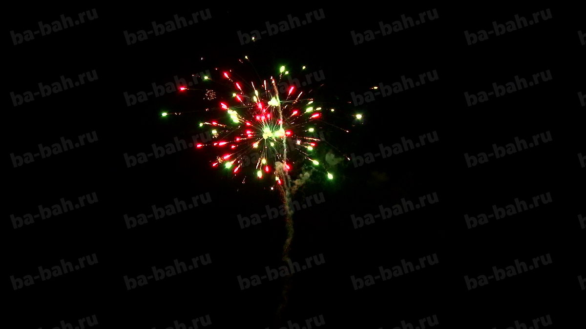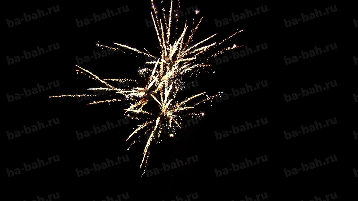 1. Синие, белые , красные звезды с серебряными рыбами. 2. Красные, синие, зеленые, желтые пионы с треском. 3. Золотые трещащие кометы. 4. Залпы золотых трещащих пальм.