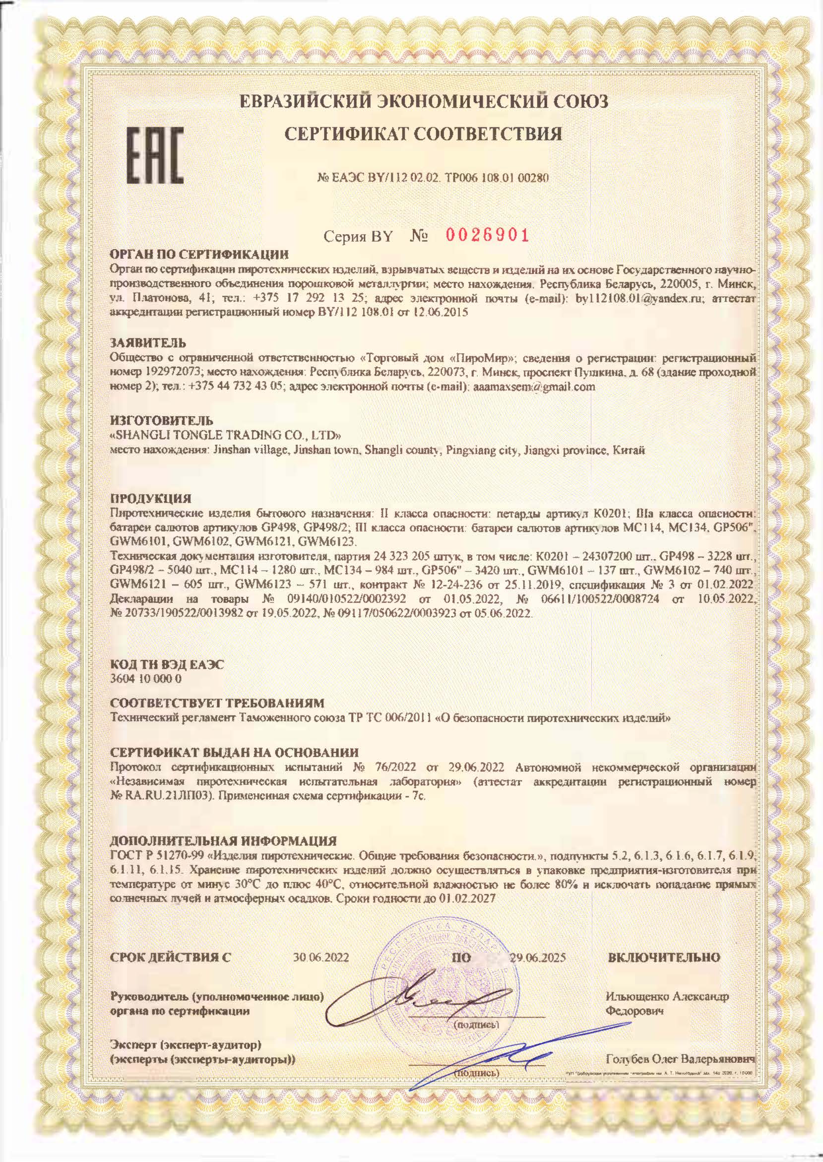 Магазин фейерверков ББ-Салют предоставляет гарантию на весь ассортимент интернет-магазина и розничных магазинов ББ-Салют! Мы торгуем пиротехникой самых лучших, проверенных торговых марок. Все изделия сертифицированы для продажи на территории России и имеют актуальный срок годности.