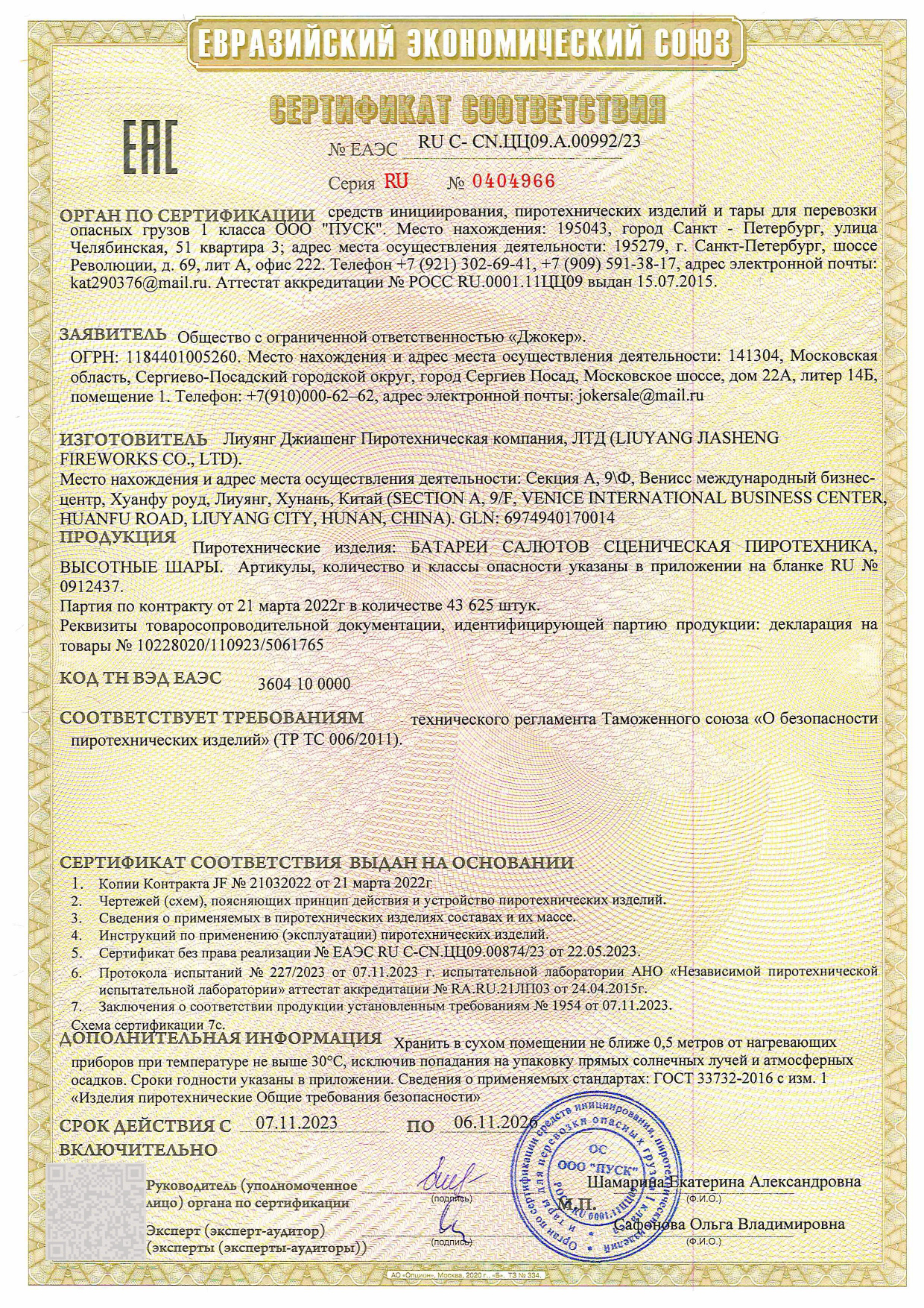 - К сожалению, мы не осуществляем доставку пиротехники в Калининградскую область, а также за пределы Российской Федерации.