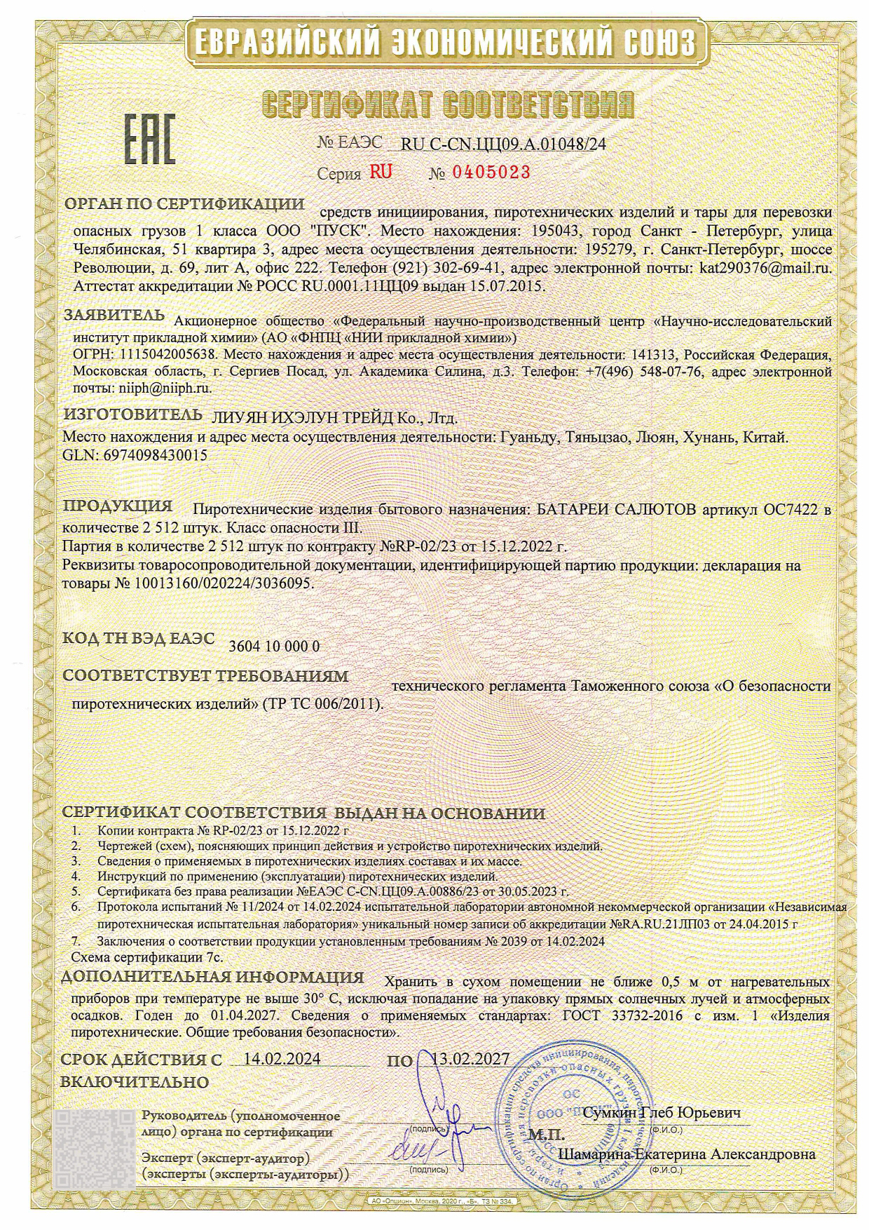 - К сожалению, мы не осуществляем доставку пиротехники в Калининградскую область, а также за пределы Российской Федерации.