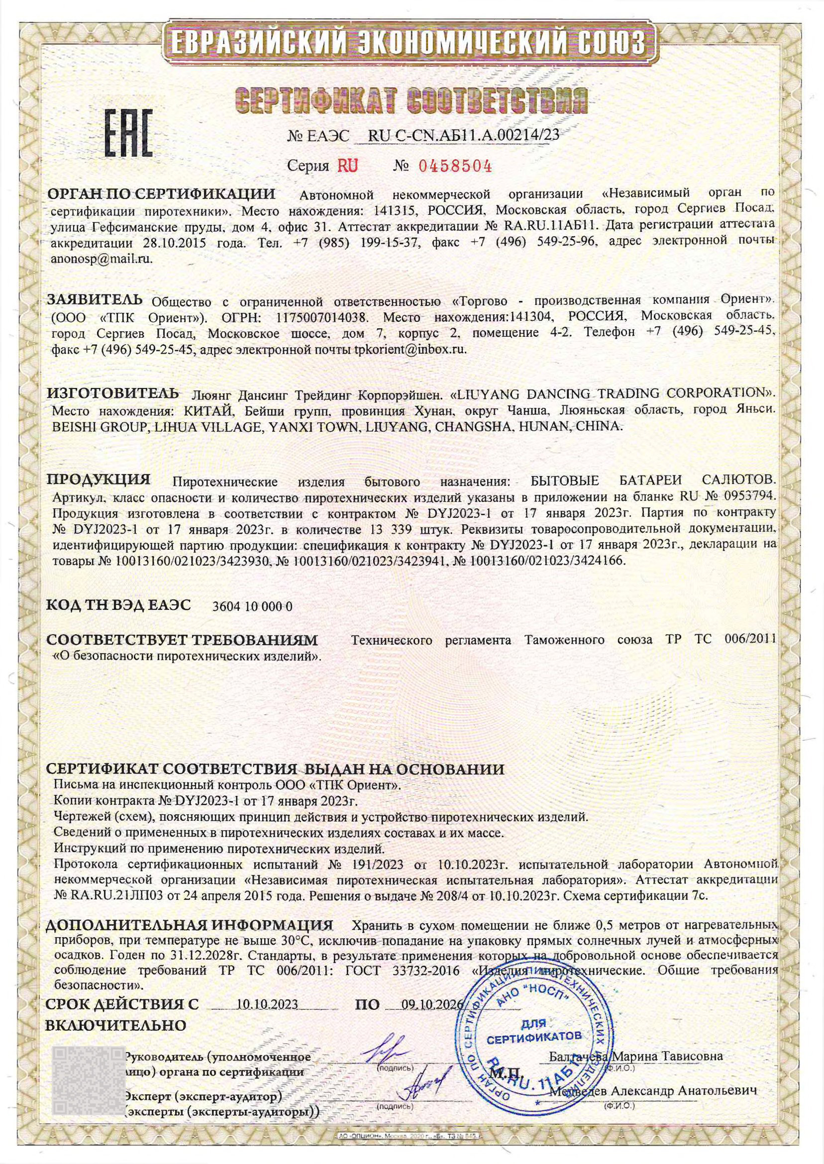 Магазин фейерверков ББ-Салют предоставляет гарантию на весь ассортимент интернет-магазина и розничных магазинов ББ-Салют! Мы торгуем пиротехникой самых лучших, проверенных торговых марок. Все изделия сертифицированы для продажи на территории России и имеют актуальный срок годности.