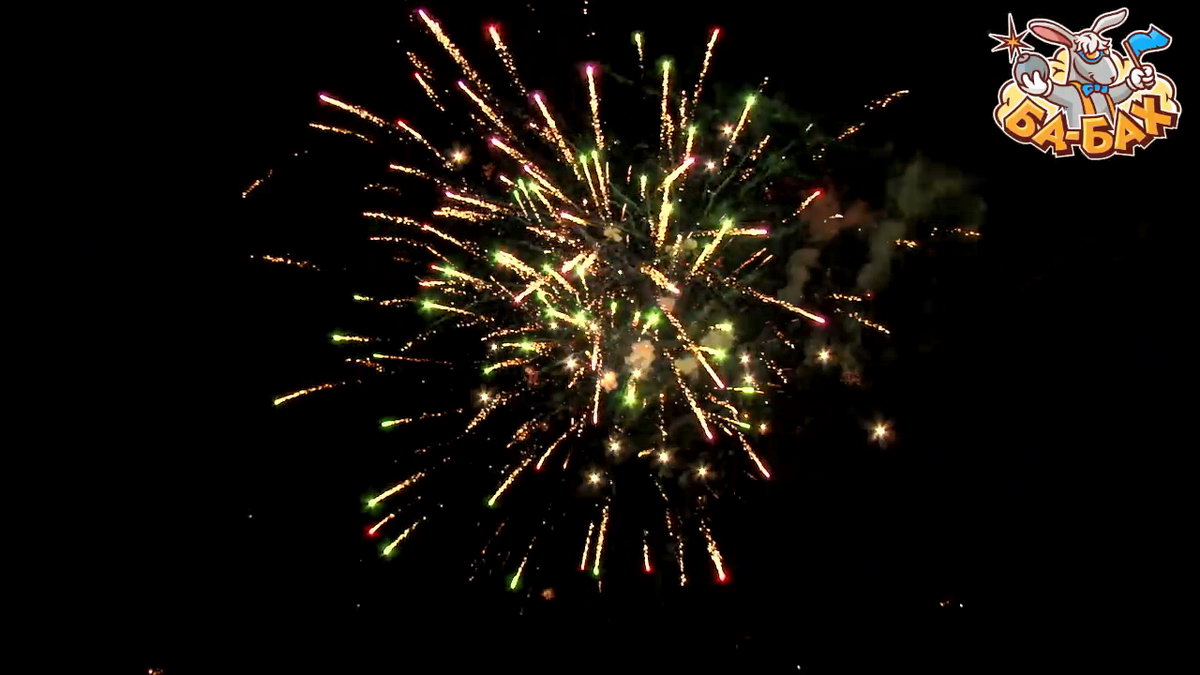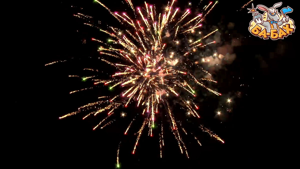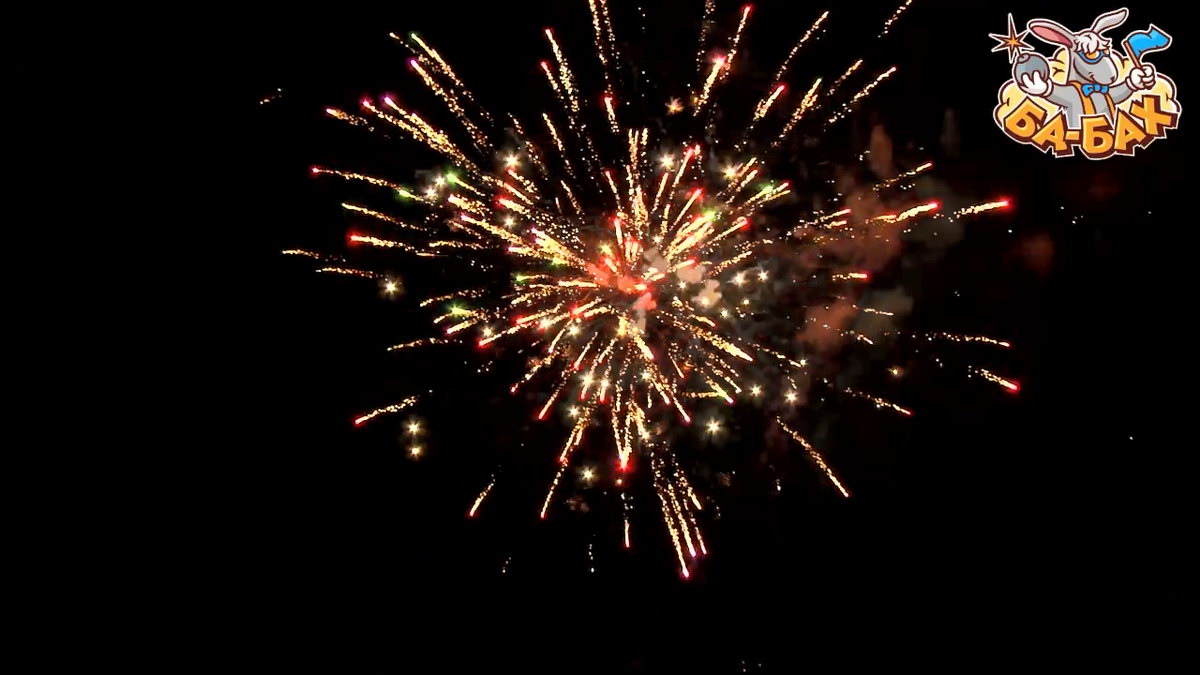 1. Салют из красных, зеленых и фиолетовых хризантем с треском и мерцанием. 2. Золотые хризантемы.