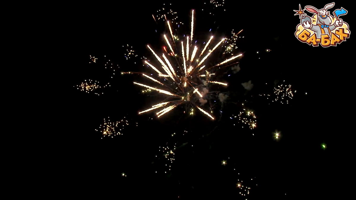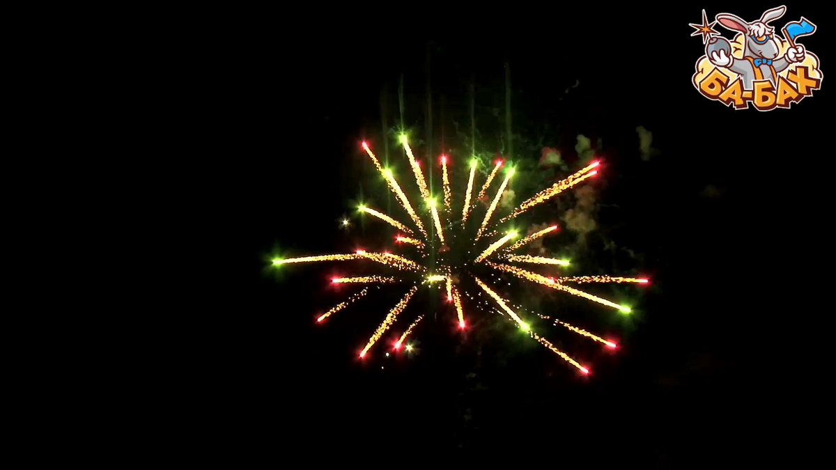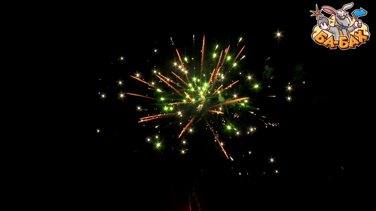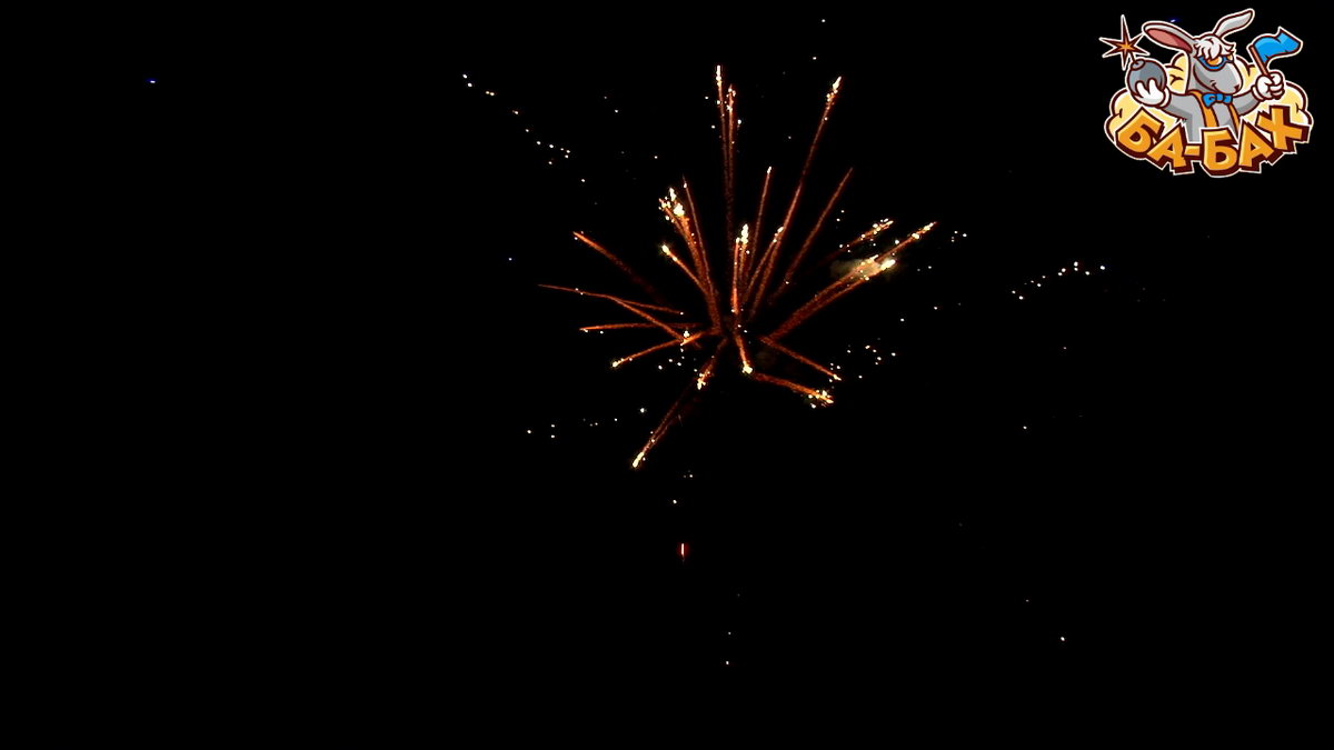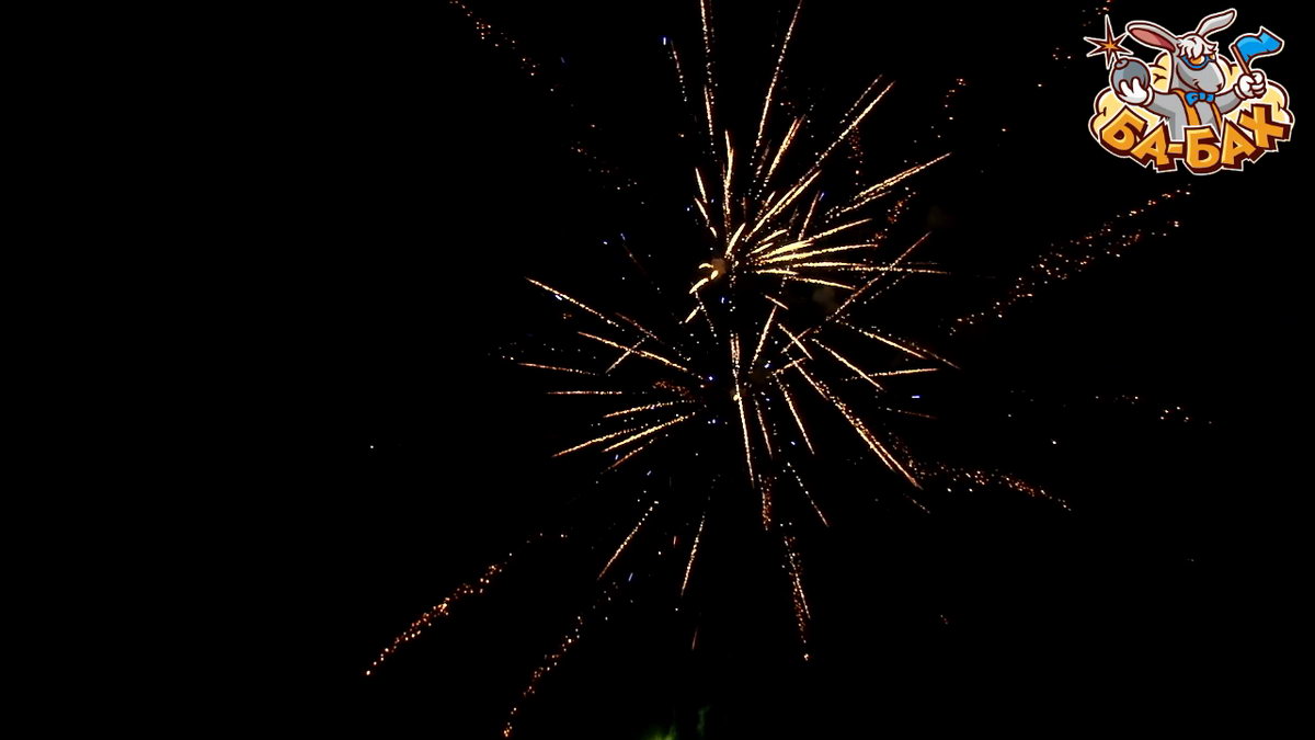 1. Салют из разноцветных пионов с белыми мерцающими огнями. 2. Золотые хризантемы с мерцающими огнями. 3. Серебряные трещащие пальмы. 4. Фиолетовые и зеленые пальмы. 5. Золотые хризантемы с синими огнями.
