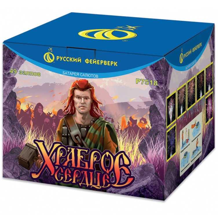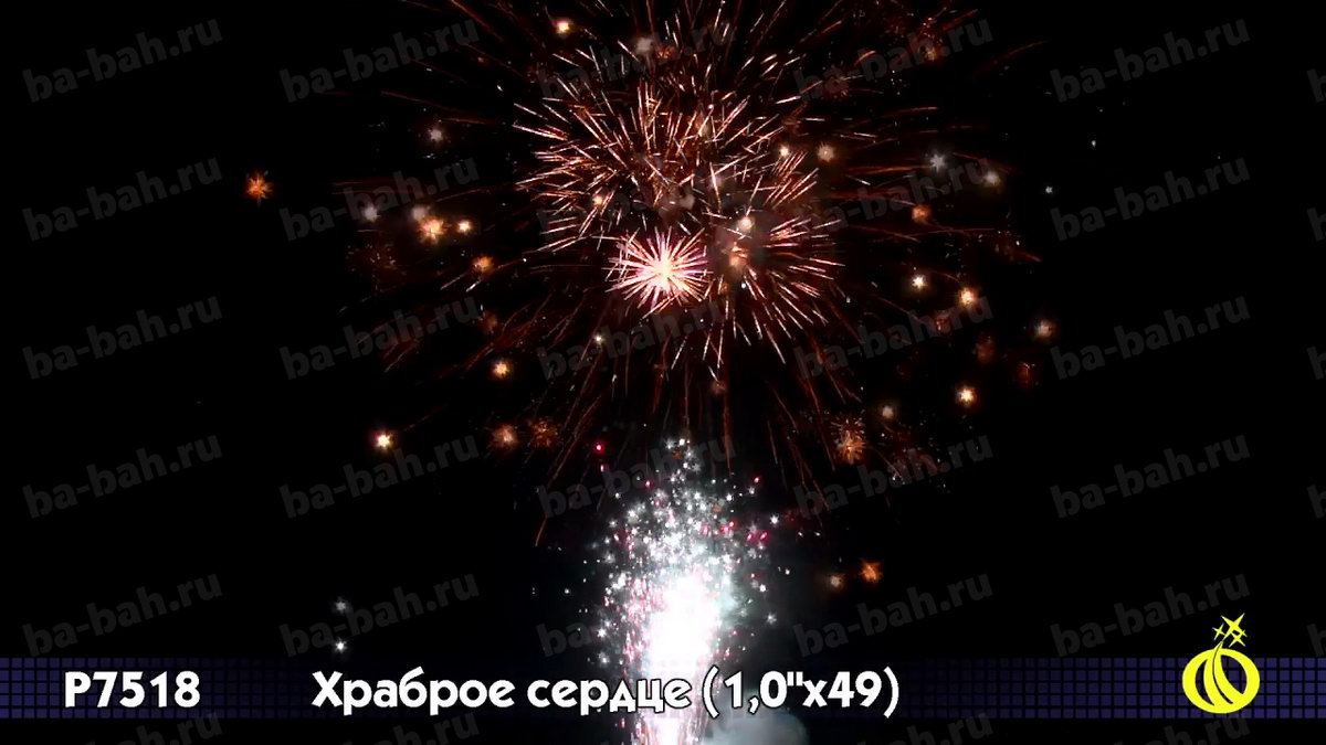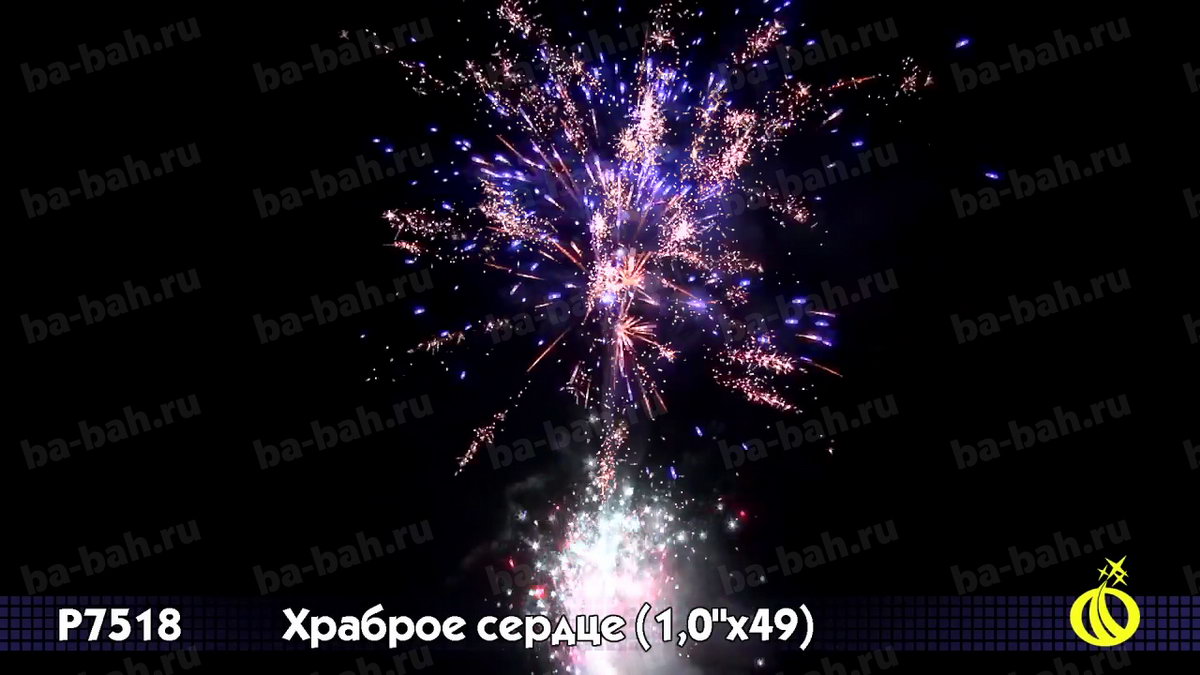 Если вы любите так называемые "объемные" или двухуровневые салюты, вам обязательно понравится новая батарея в нашей подборке, которая называется "Храброе сердце". Это настоящее произведение искусства в области развлекательной пиротехники. В "партере", то есть нижнем уровне, загораются залпы красного и белого мерцания, что выглядит очень изящно и романтично. Вверху, высоко в небе взрываются 49 сфер с самыми различными, но одинаково впечатляющими эффектами: сфера золотых хвостов