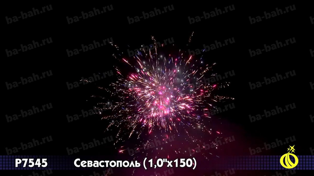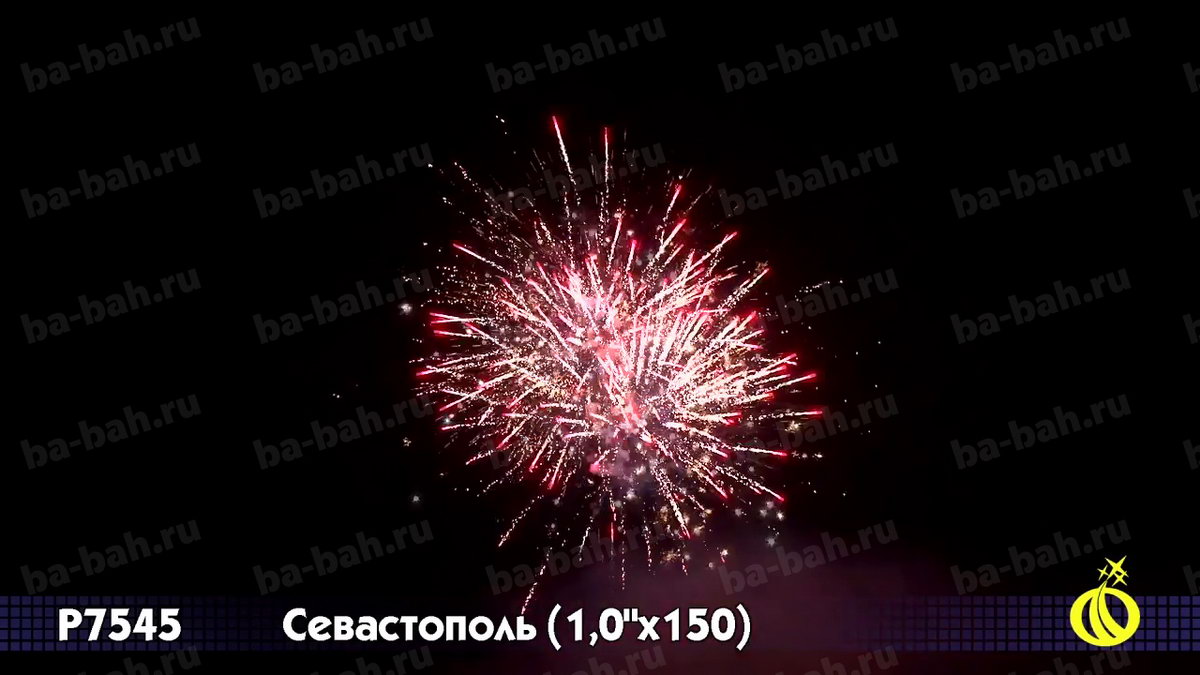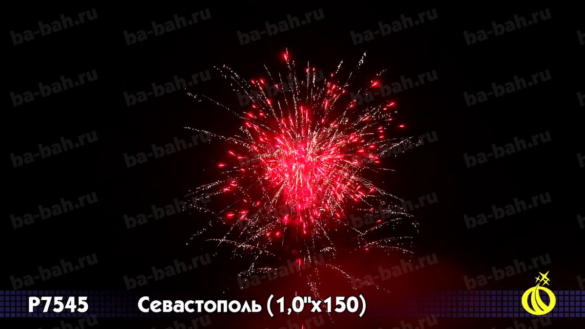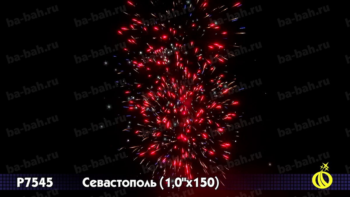 Город-герой Севастополь - не только один из самых важных и крупных российских городов. Это город - настоящий символ. Символ нашего славного прошлого, настоящего и будущего, символ великих побед русского оружия и несгибаемости русского духа. Поэтому, конечно же, фейерверк с таким названием просто обязан быть торжественным, пышным, мощным. Это не какой-то маленький и смешной салютик! Это изделие, которое гордо носит название БАТАРЕИ, чуть ли не артиллерийской, по своей мощи и громкости. И разумеется, в такой салют были отобраны только самые лучшие, самые впечатляющие и грандиозные эффекты. Фейерверк будет уместен, без преувеличения, на любом празднике! Вот список эффектов (их почти полтора десятка): алые, синие звезды и белое мерцание
