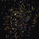 1. Сфера золотых хвостов с переходом в красные звезды (красная хризантема) и зеленое мерцание. 2. Зеленая сфера (пион), множество золотых ниспадающих нитей (парча) и красное мерцание. 3. Множество серебряных ниспадающих нитей (парча) и синие звезды. 4. Красная сфера (пион) и облако трещащих разрывов (трещащий дождь).