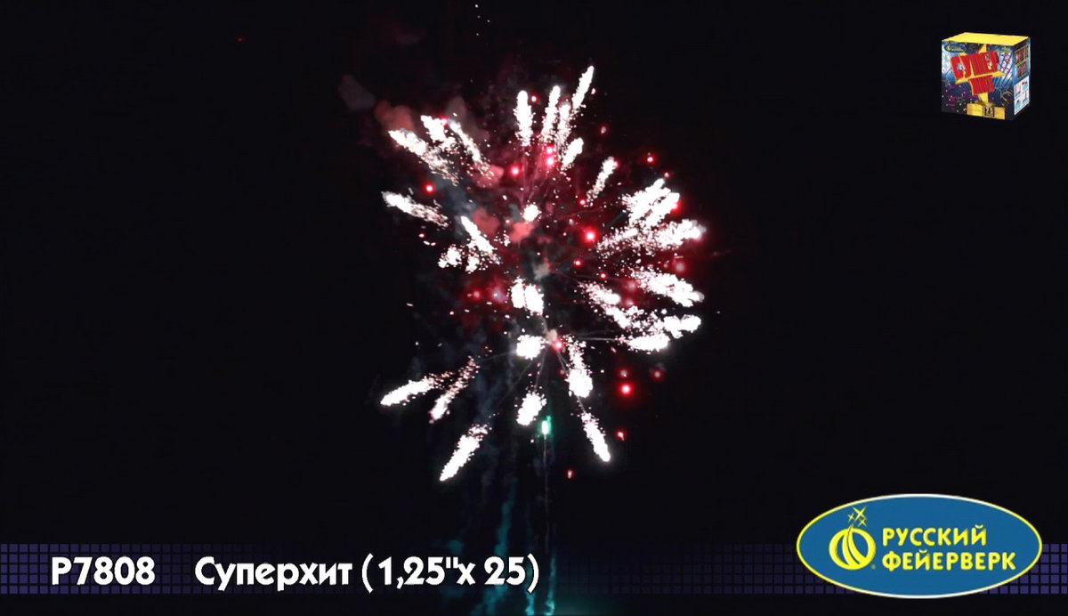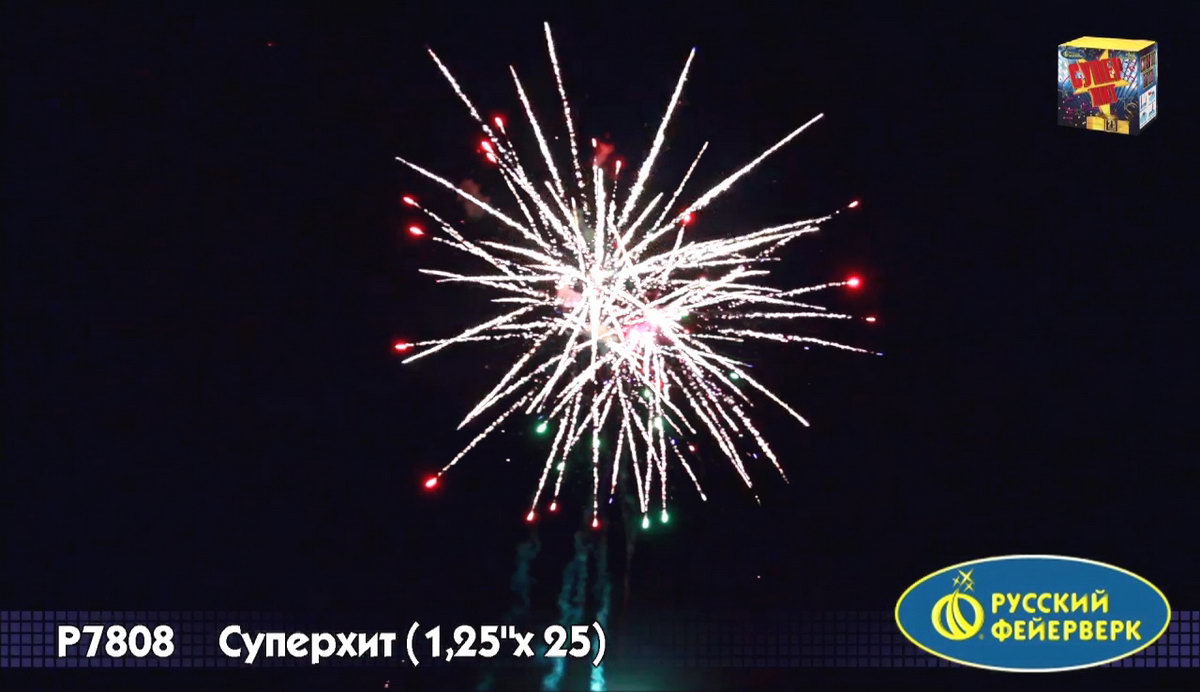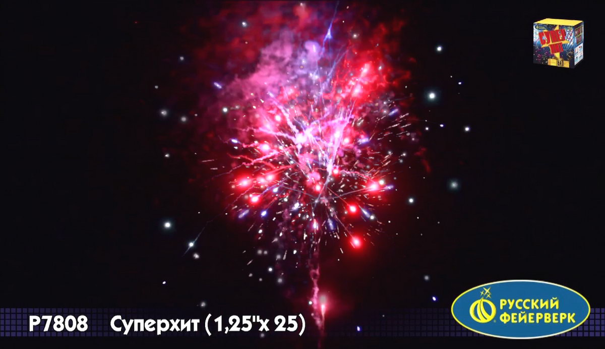 Специально для сомневающихся и колеблющихся компания "Русский фейерверк" выпустила салют "Суперхит". Если вы не знаете, какой фейерверк выбрать, смело берите "Суперхит", ведь его название говорит само за себя! Поверьте, великолепные пиротехнические эффекты этого фейерверка не заставят жалеть о покупке: пурпурные, синие, зеленые, алые салютные "зонтики" сопровождаются множеством трещащих серебряных искр, облаков и комет.