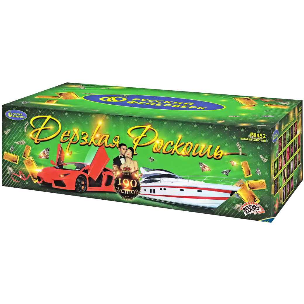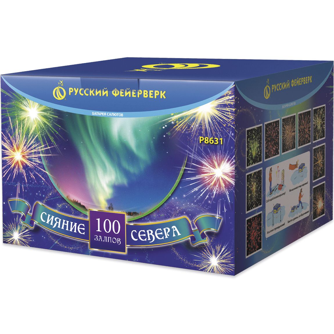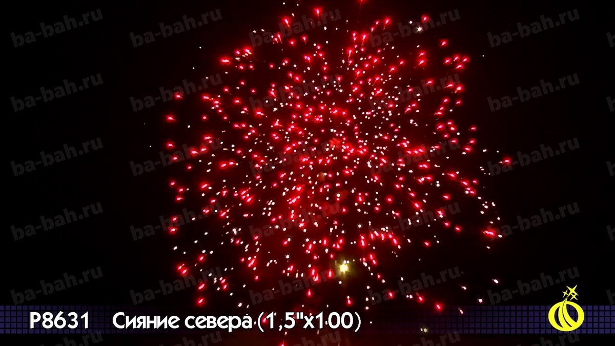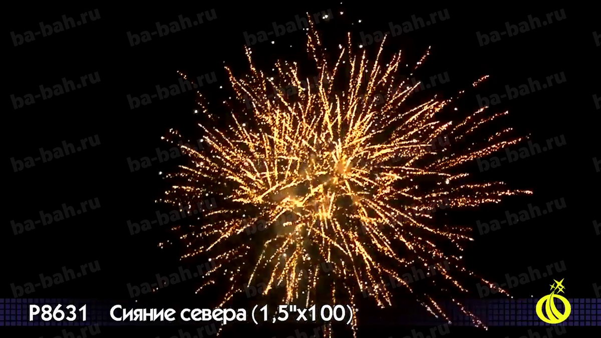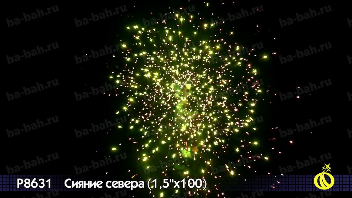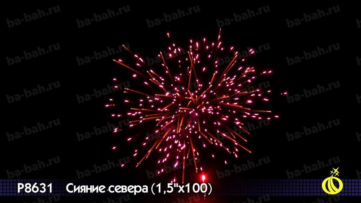 Невероятный по красоте и мощи салют "Сияние Севера" сочетает большой калибр - 1,5 дюйма (38 мм) - с большим числом залпов: целых 100 штук! Вас ждет захватывающее и долгое пиротехническое шоу с множеством эффектов: золотистые кометы