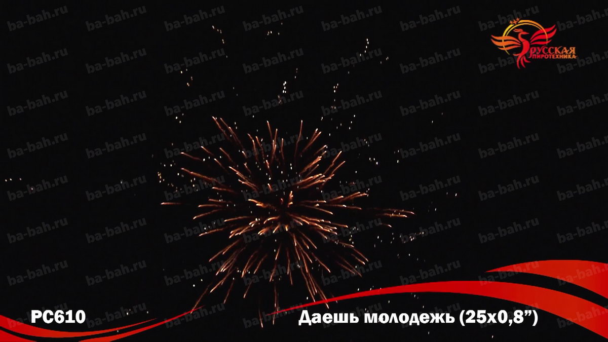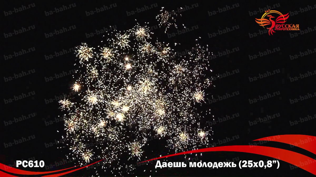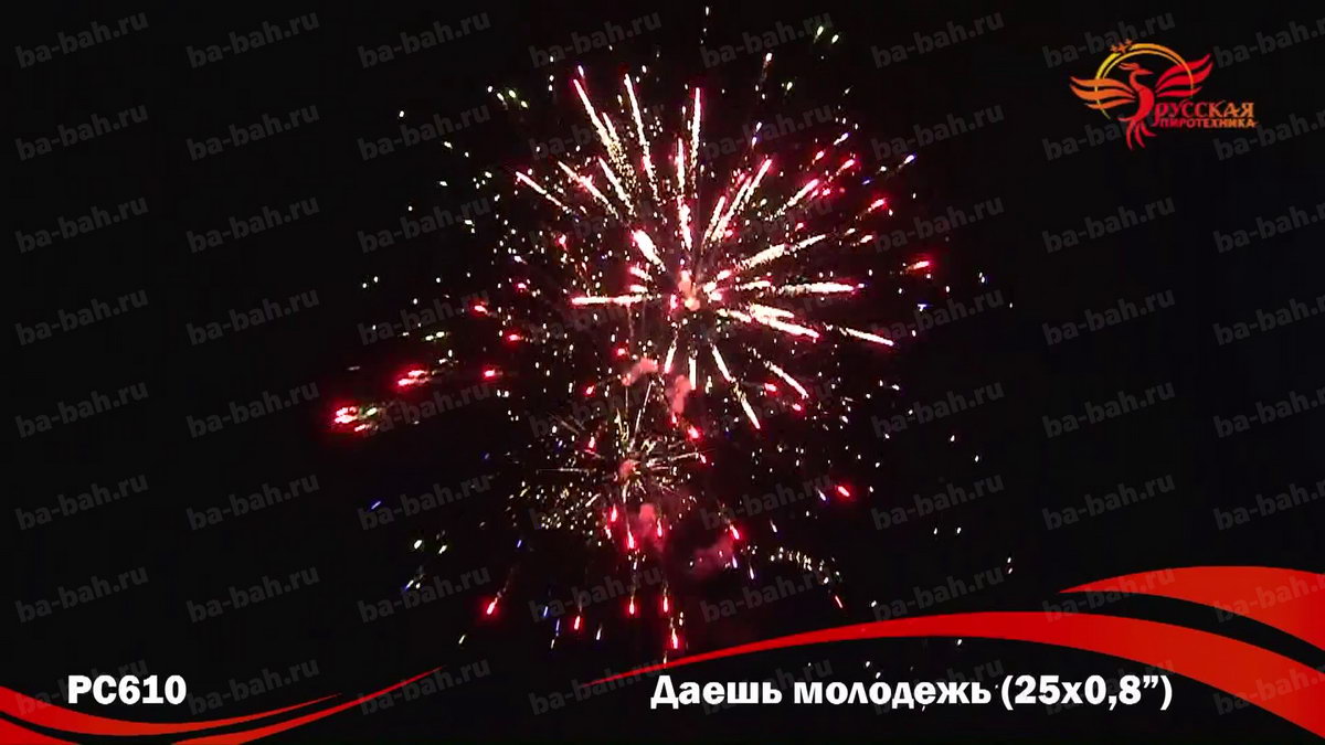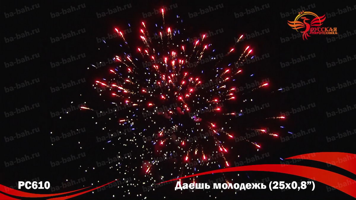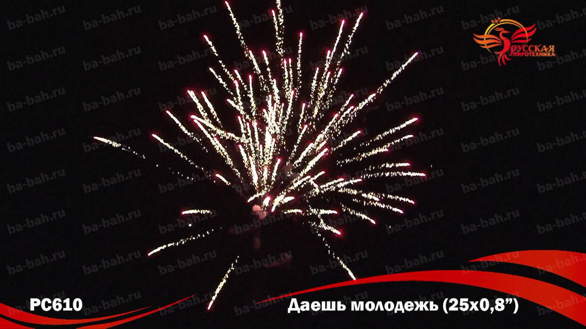 Фейерверк "Даешь молодежь" - "бюджетный" вариант салюта, специально для молодежи и студентов! Это батарея на 25 залпов по низкой до смешного цене. Но дешевый не значит плохой - эффекты салюта "Даешь молодежь" очень красивы: синие и красные огни, фиолетовые и зеленые мерцающие огни, золотые форсы и множество трещащих сфер.