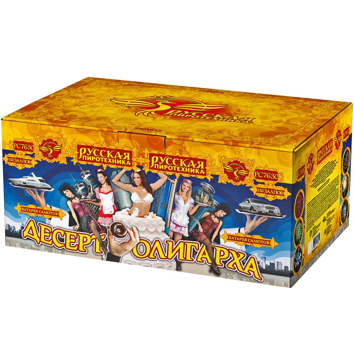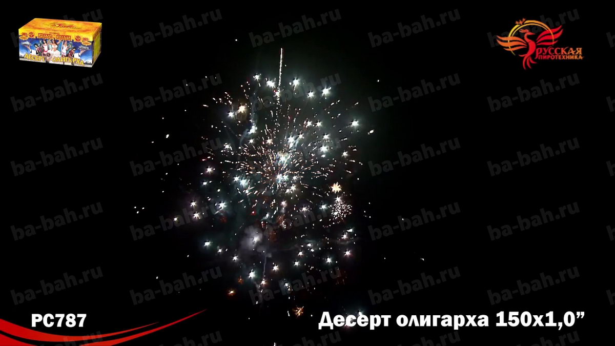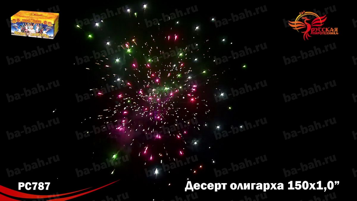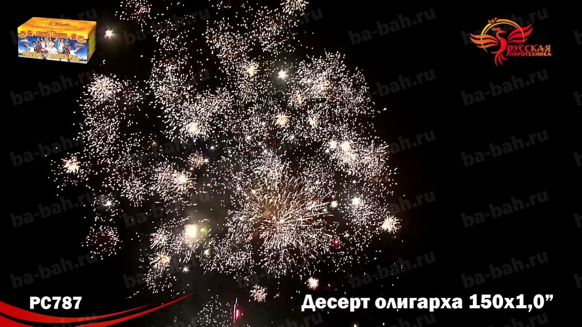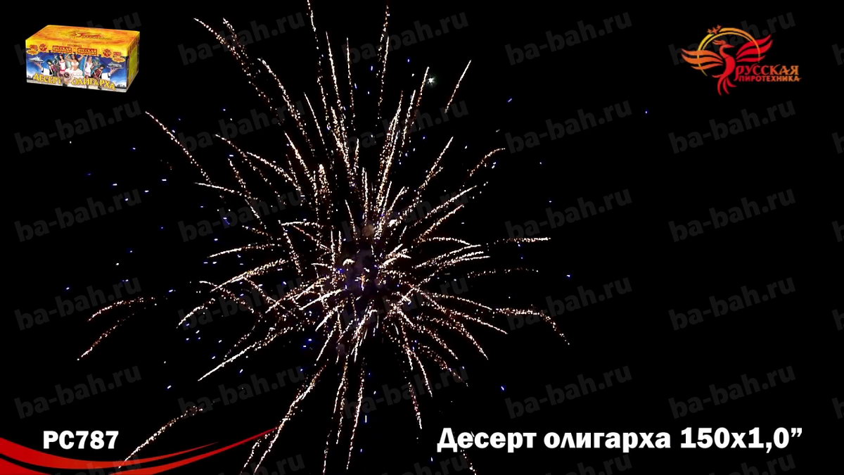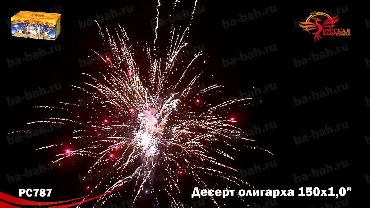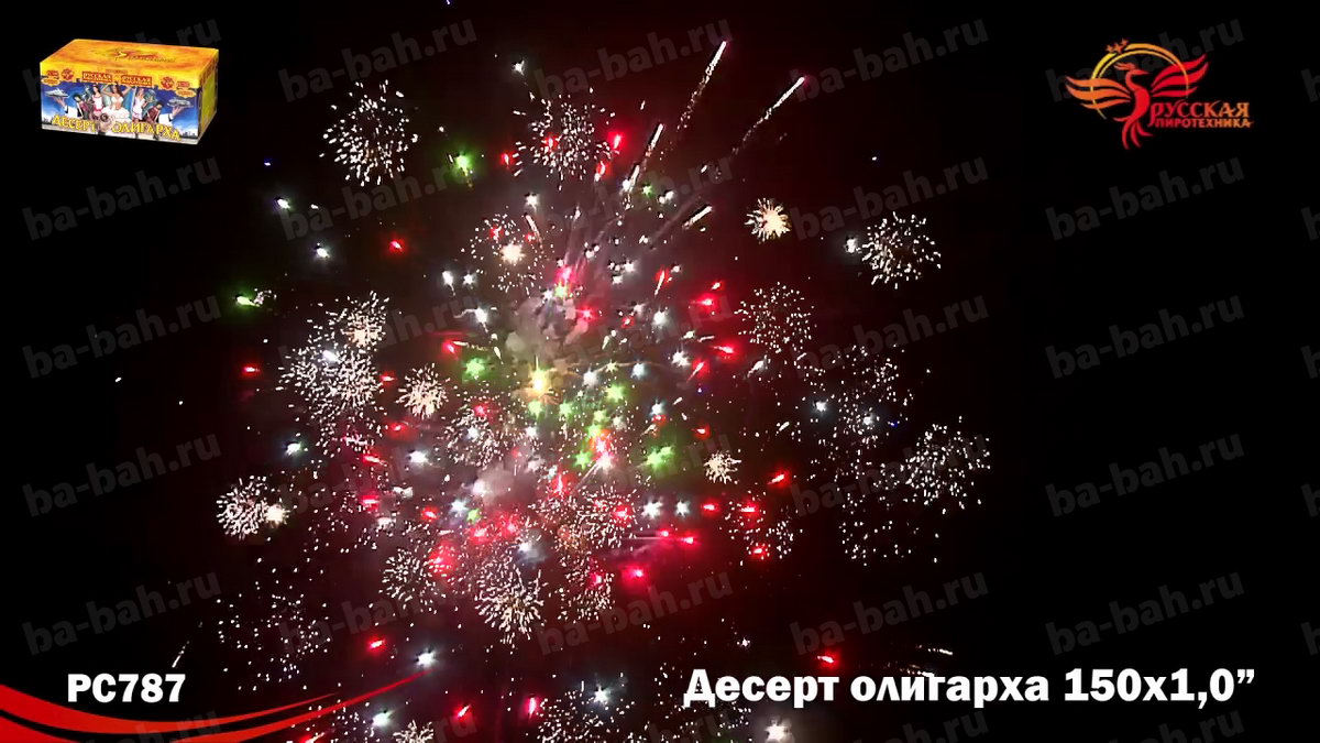 Фейерверк "Десерт олигарха", как вишенка на торте - может стать центральным номером любой развлекательной программы! Название салюта подсказывает, что его красота, длительность и подборка огненных эффектов удовлетворят даже самого избалованного жизнью олигарха. Одно только перечисление этих эффектов займет немало времени! Ярко-красные огни с белым мерцанием