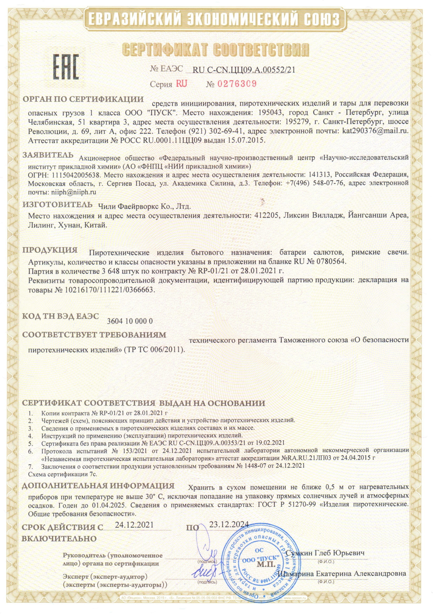 - Обратите внимание, что при покупке фейерверка Вы несете полную ответственность за соблюдение правил хранения, техники безопасности и инструкции по запуску изделия!
