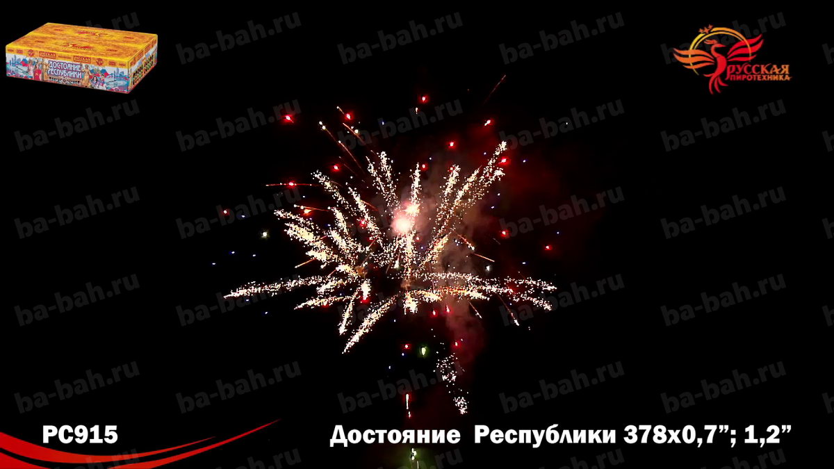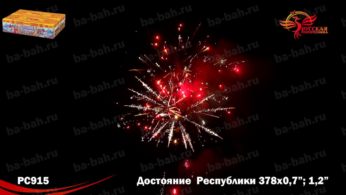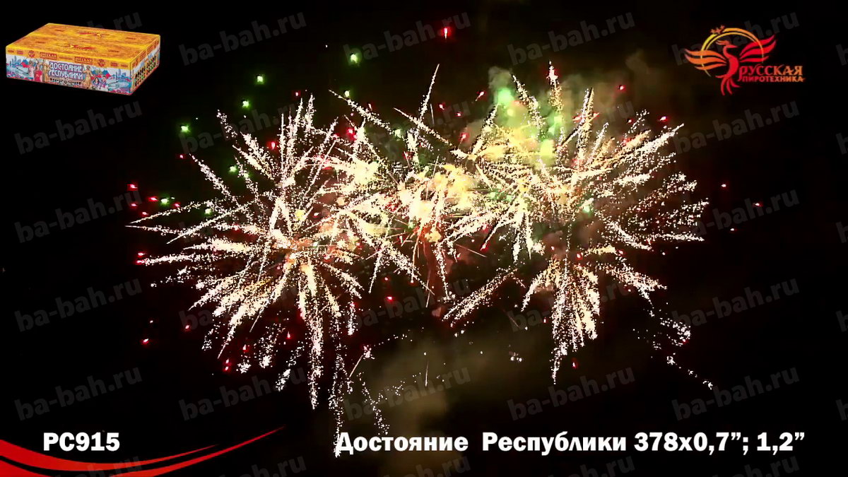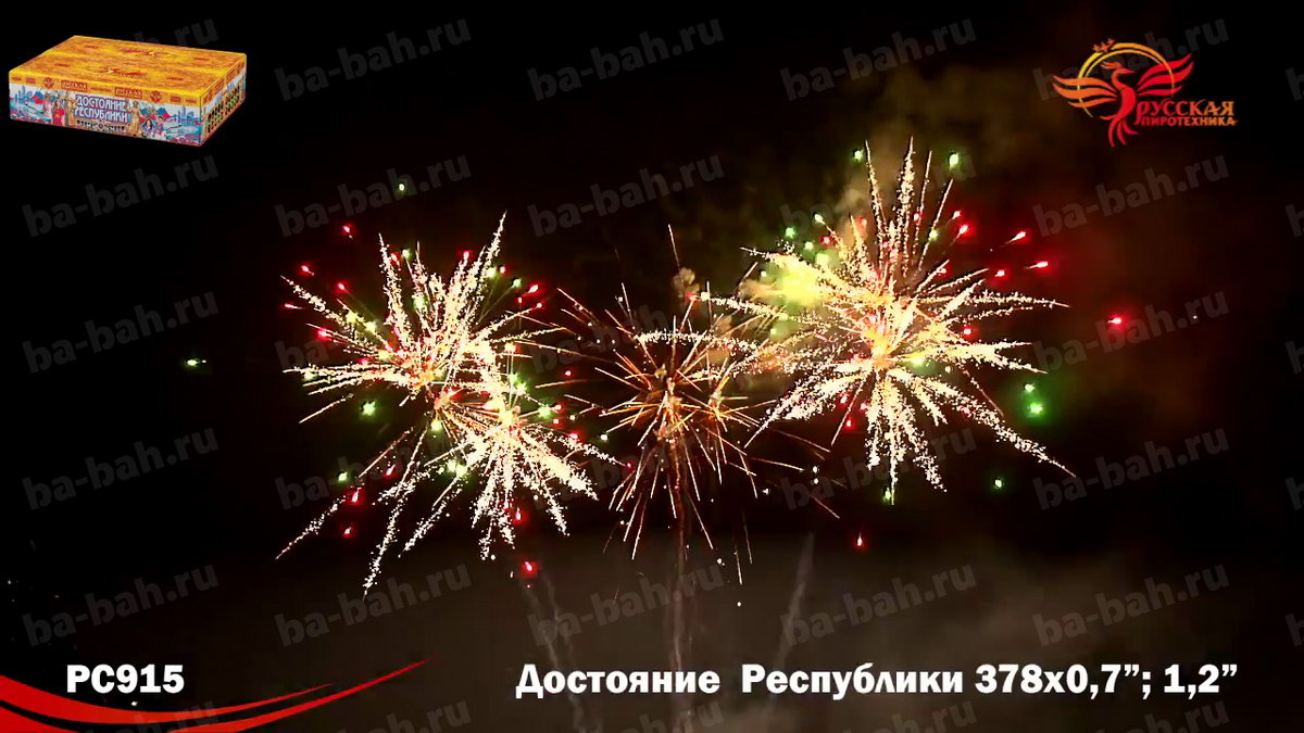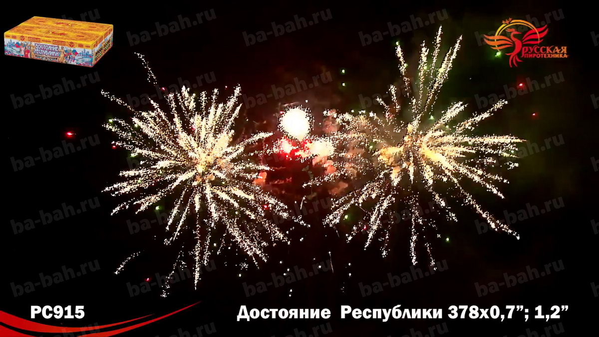 Фееричное зрелище, которое запомнится на всю жизнь - вот что предстоит увидеть всем тем, кто купит фейерверк "Достояние республики". Этот поражающий воображение салют на 378 (!!!) залпов выходит за рамки обычных батарей. Его и правда можно назвать национальным достоянием, настоящим произведением искусства, opus magnum всех отечественных пиротехников! Безупречно подобранные, самые современные огненные эффекты собраны в динамичную композицию, которая каждый миг из 3 минут продолжительности находит чем удивить взыскательного зрителя. Форсы, кометы, пионы, хризантемы, мерцание, треск, букетики, хлопки, шуршащие звезды, веера и т.д. - два десятка эффектов, многие из которых вы никогда не видели раньше. Огромная, тяжелая и дорогая батарея, которая, бесспорно, стоит своих денег! Рождение первенца, свадьба или круглая дата - вот что можно считать подходящим поводом для покупки этого красавца.