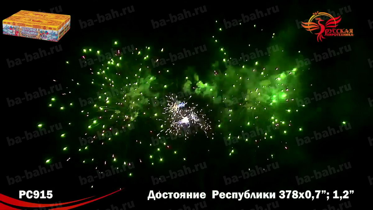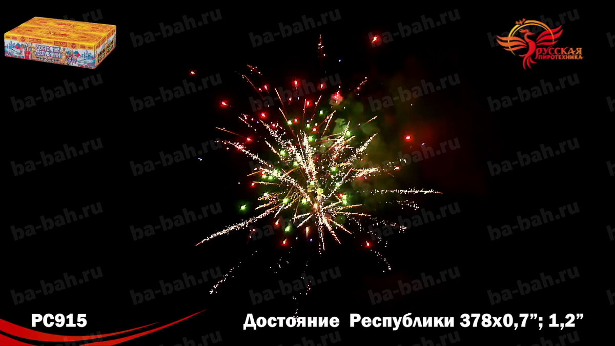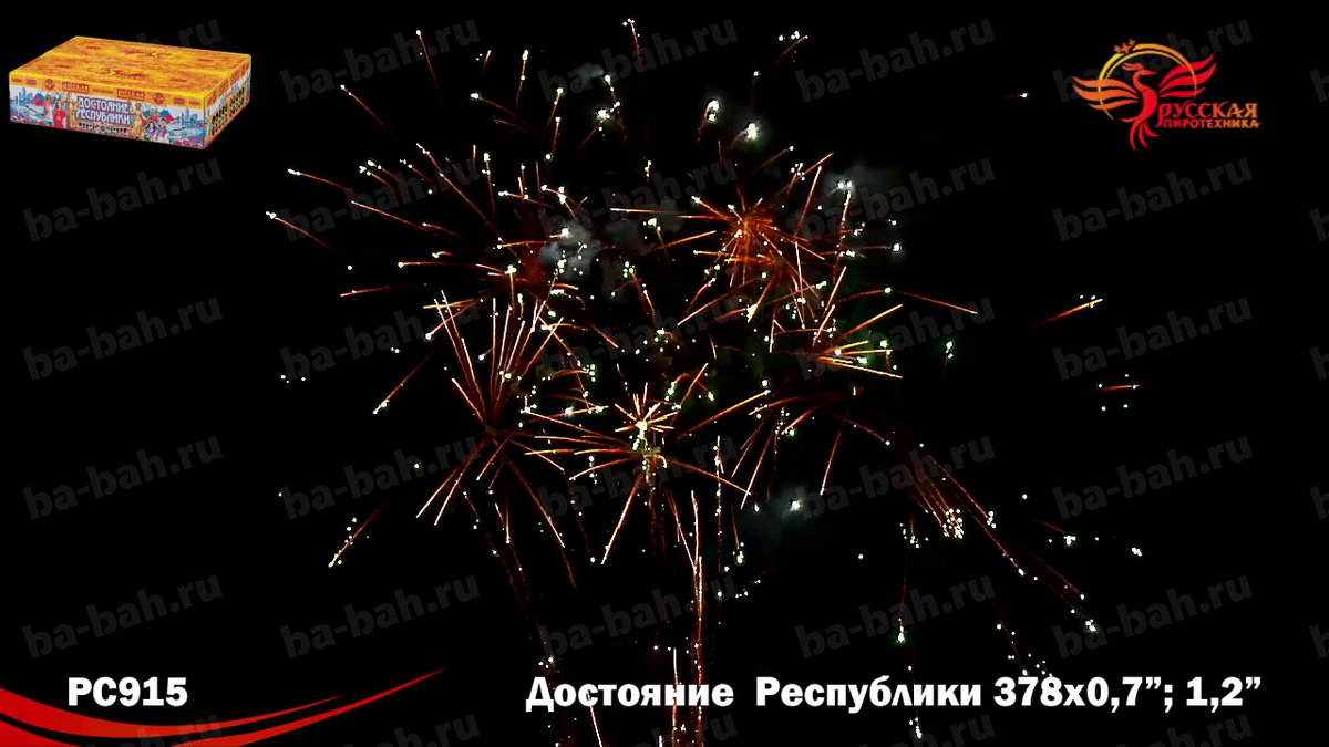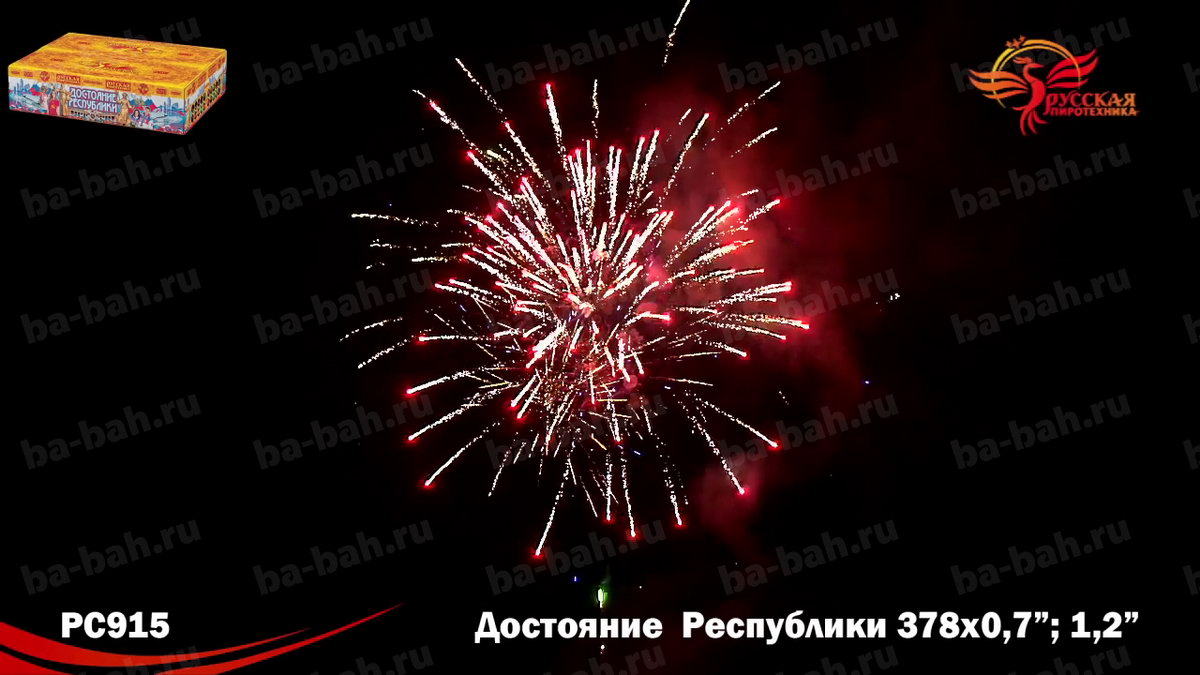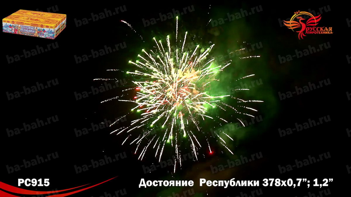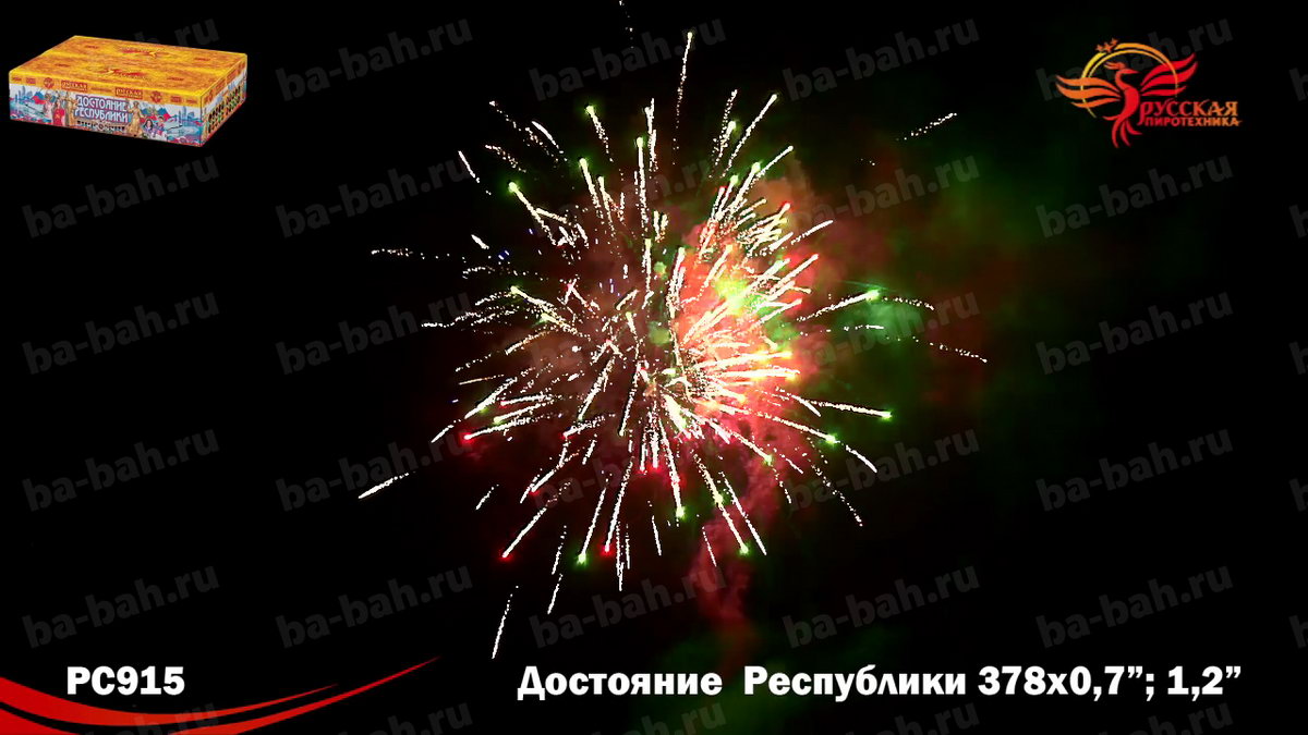 Фееричное зрелище, которое запомнится на всю жизнь - вот что предстоит увидеть всем тем, кто купит фейерверк "Достояние республики". Этот поражающий воображение салют на 378 (!!!) залпов выходит за рамки обычных батарей. Его и правда можно назвать национальным достоянием, настоящим произведением искусства, opus magnum всех отечественных пиротехников! Безупречно подобранные, самые современные огненные эффекты собраны в динамичную композицию, которая каждый миг из 3 минут продолжительности находит чем удивить взыскательного зрителя. Форсы, кометы, пионы, хризантемы, мерцание, треск, букетики, хлопки, шуршащие звезды, веера и т.д. - два десятка эффектов, многие из которых вы никогда не видели раньше. Огромная, тяжелая и дорогая батарея, которая, бесспорно, стоит своих денег! Рождение первенца, свадьба или круглая дата - вот что можно считать подходящим поводом для покупки этого красавца.