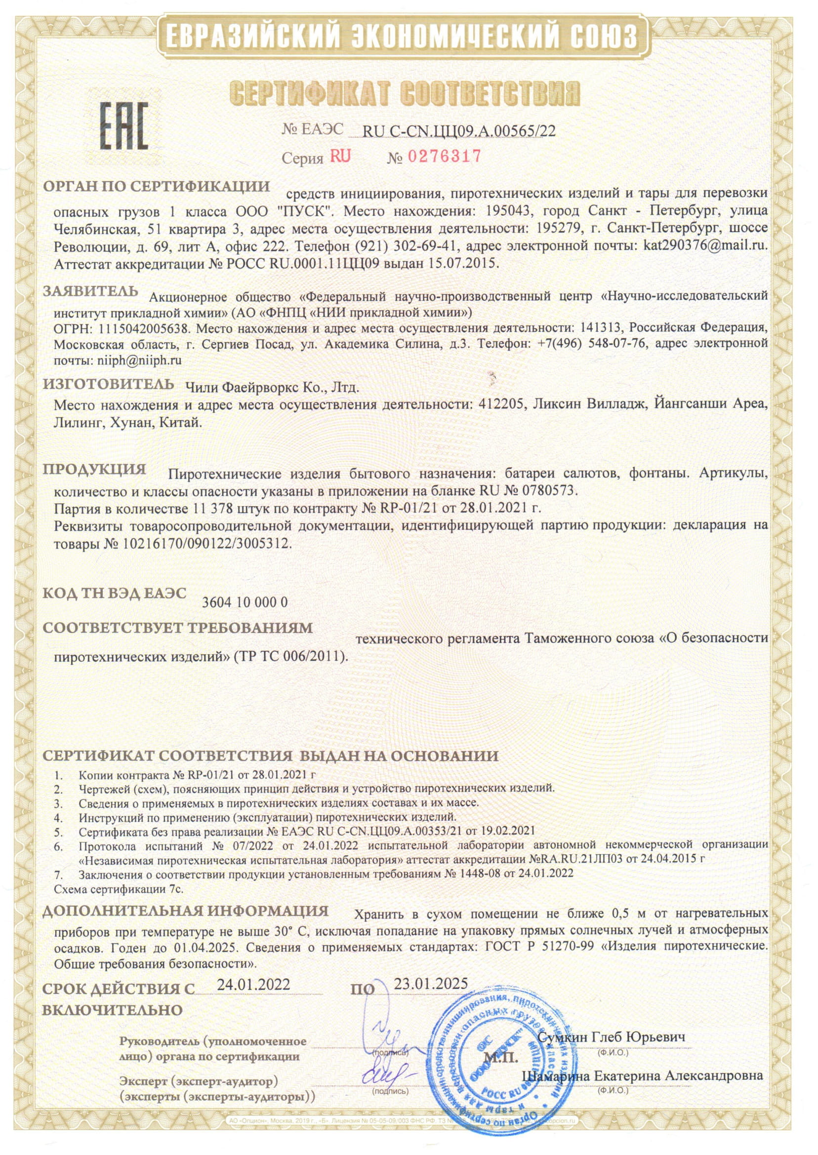 - К сожалению, мы не осуществляем доставку пиротехники в Калининградскую область, а также за пределы Российской Федерации.