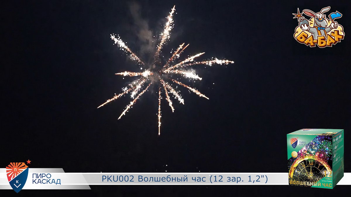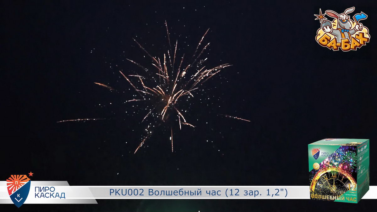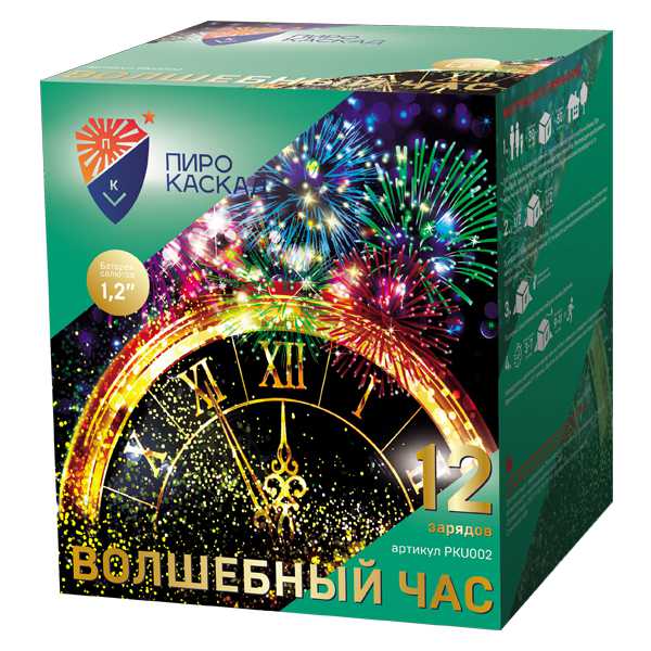 Фейерверк Волшебный час - это настоящее огненное представление. В нем использовались три эффекта, но они самые насыщенные, яркие и магические. Они притягивают к себе сотни восторженных глаз и милых улыбок. На высоте 35 метров раскроются золотые королевские волны с серебристым мерцанием, которые медленно тают в ночной мгле. За ними последуют золотые трещащие волны. В финале зрители увидят популярные парчовые короны с крутым эффектом тысячи хризантем. От такого волшебного представления все гости будут в восторге!