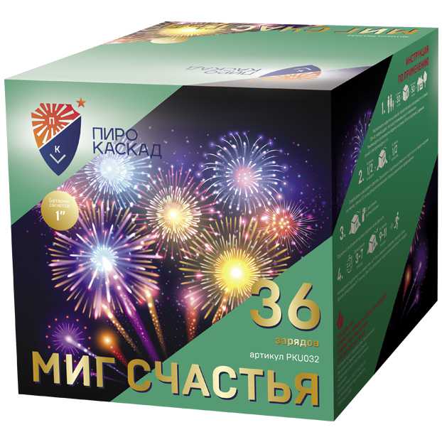 Фейерверк Миг счастья лучше увидеть в живую! В нем 36 залпов, которые продолжают работать в течение 50 секунд. Это 50 секунд безумного счастья! В темном небе на высоте 30 метров разорвутся красные георгины, шикарные королевские парчовые короны, крупные красные пальмы, любимые пурпурные георгины, серебристые короны. Каждый эффект сопровождается серебристым или зеленым мерцанием. Кульминацией шоу станет потрясающий эффект тысяча хризантем с красными и зелеными пальмами. И каждый миг в жизни должен проживаться так, будто он последний. Тогда ваше счастье будет длиться целую жизнь!