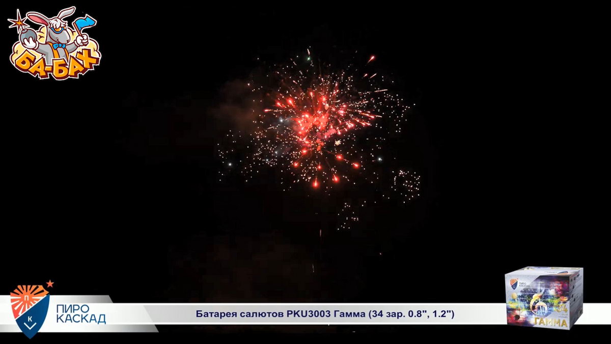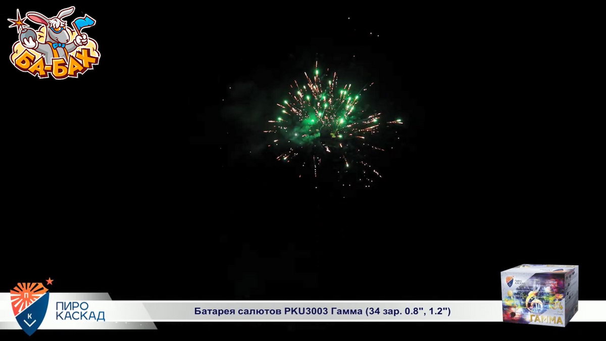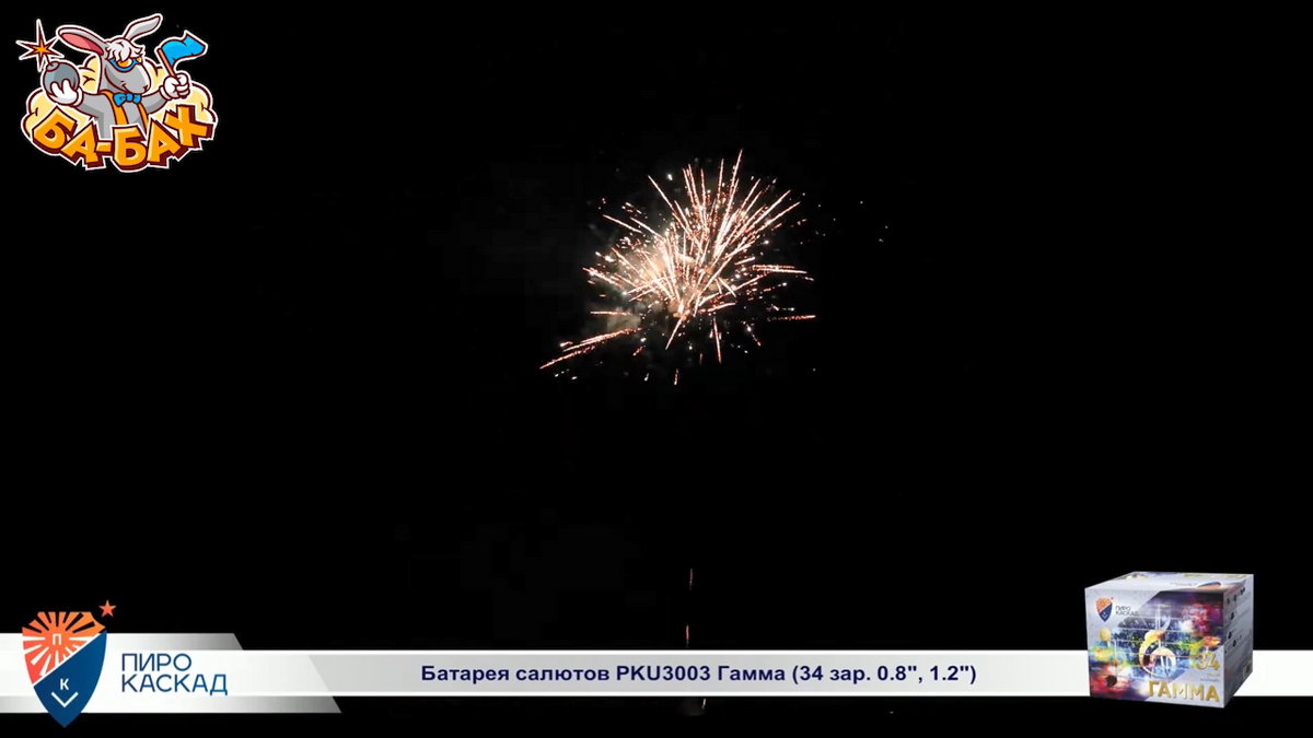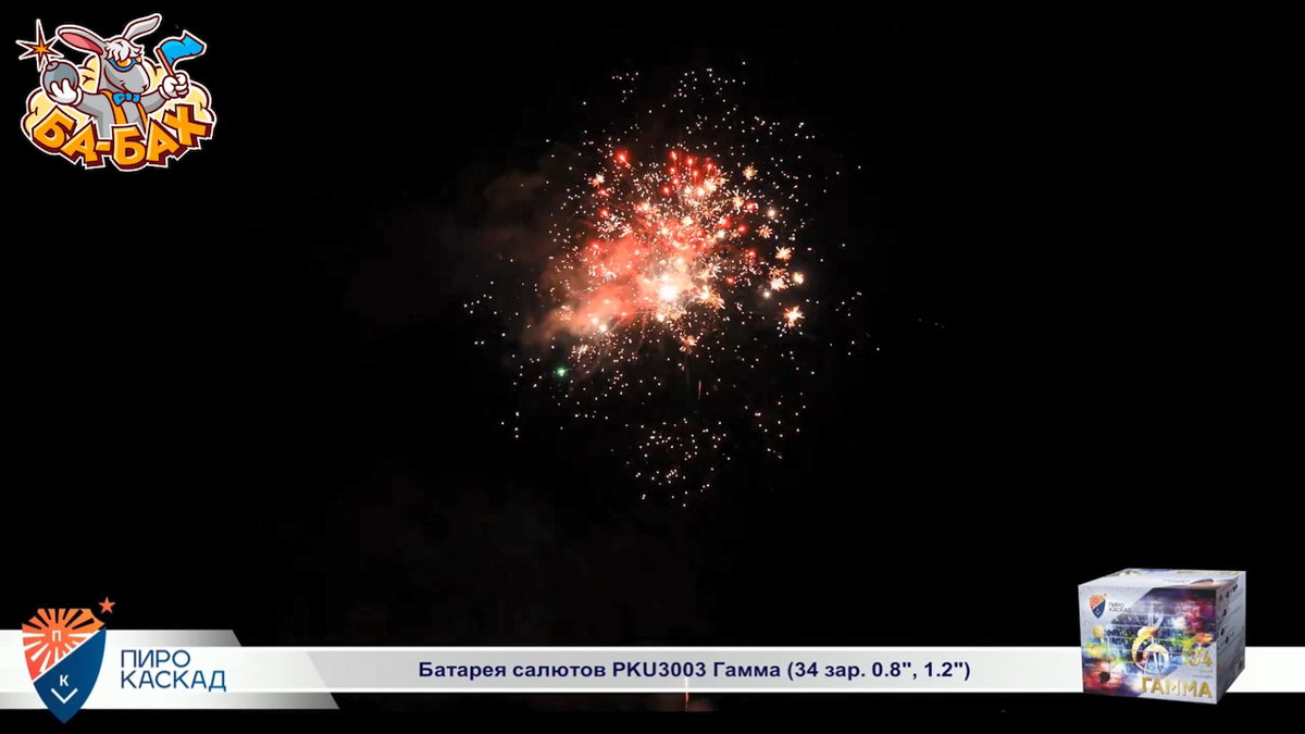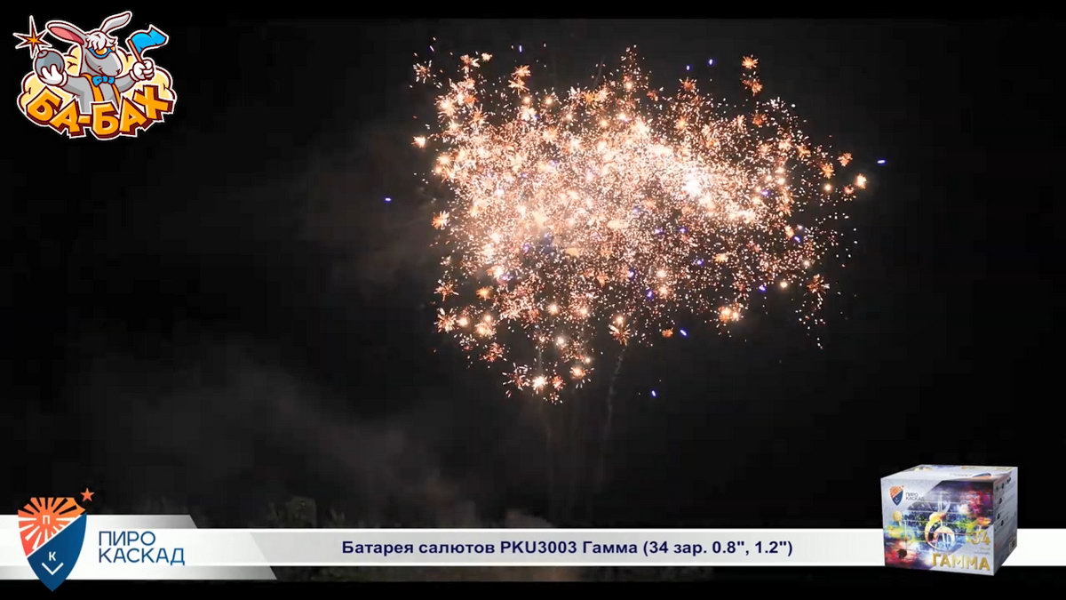 В фейерверке Гамма 34 залпа с интересным сочетанием двух калибров - 0,8 и 1,2. Ракеты поднимутся в воздух на 35 метров и распустят в небе 5 уникальных эффектов. Зрители увидят красные пальмы, рассыпающиеся с треском. За ними последуют парчовые короны с ярким серебристым мерцанием. Взлет ракет будет сопровождаться с любимым эффектом тысяча хризантем с зелеными или пурпурными звездами. В финале прозвучит завершающий аккорд - вылетят трещащие кометы и раскроются мерцающими волнами с серебристыми форсами и с синими георгинами.