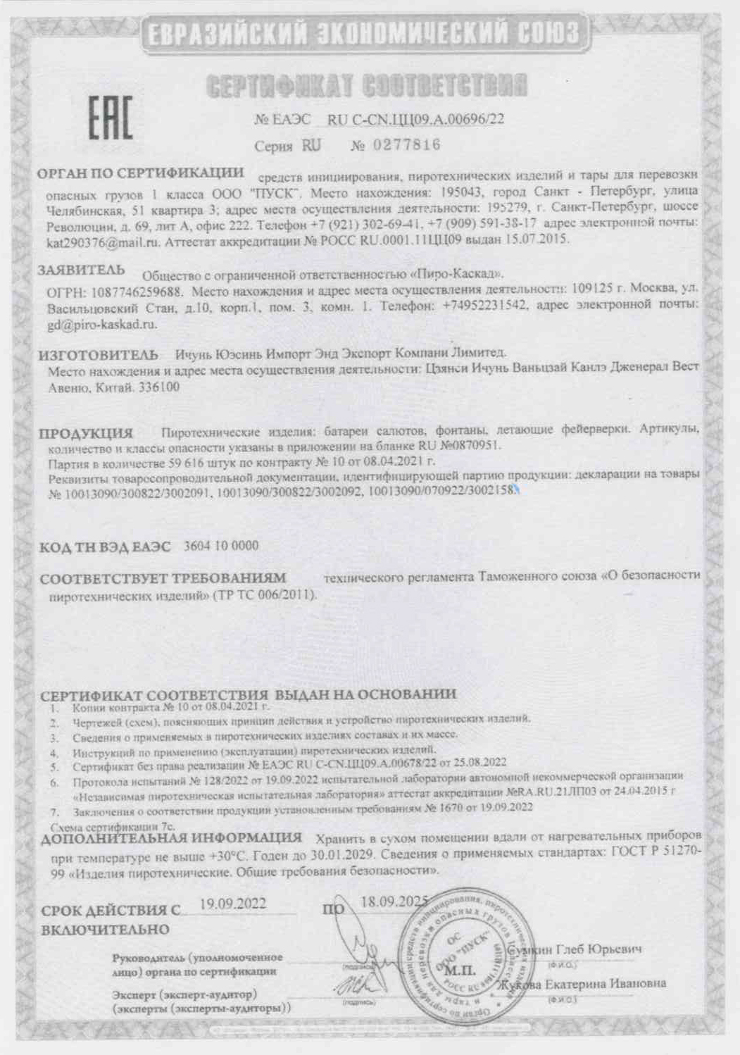 - Обратите внимание, что при покупке фейерверка Вы несете полную ответственность за соблюдение правил хранения, техники безопасности и инструкции по запуску изделия!