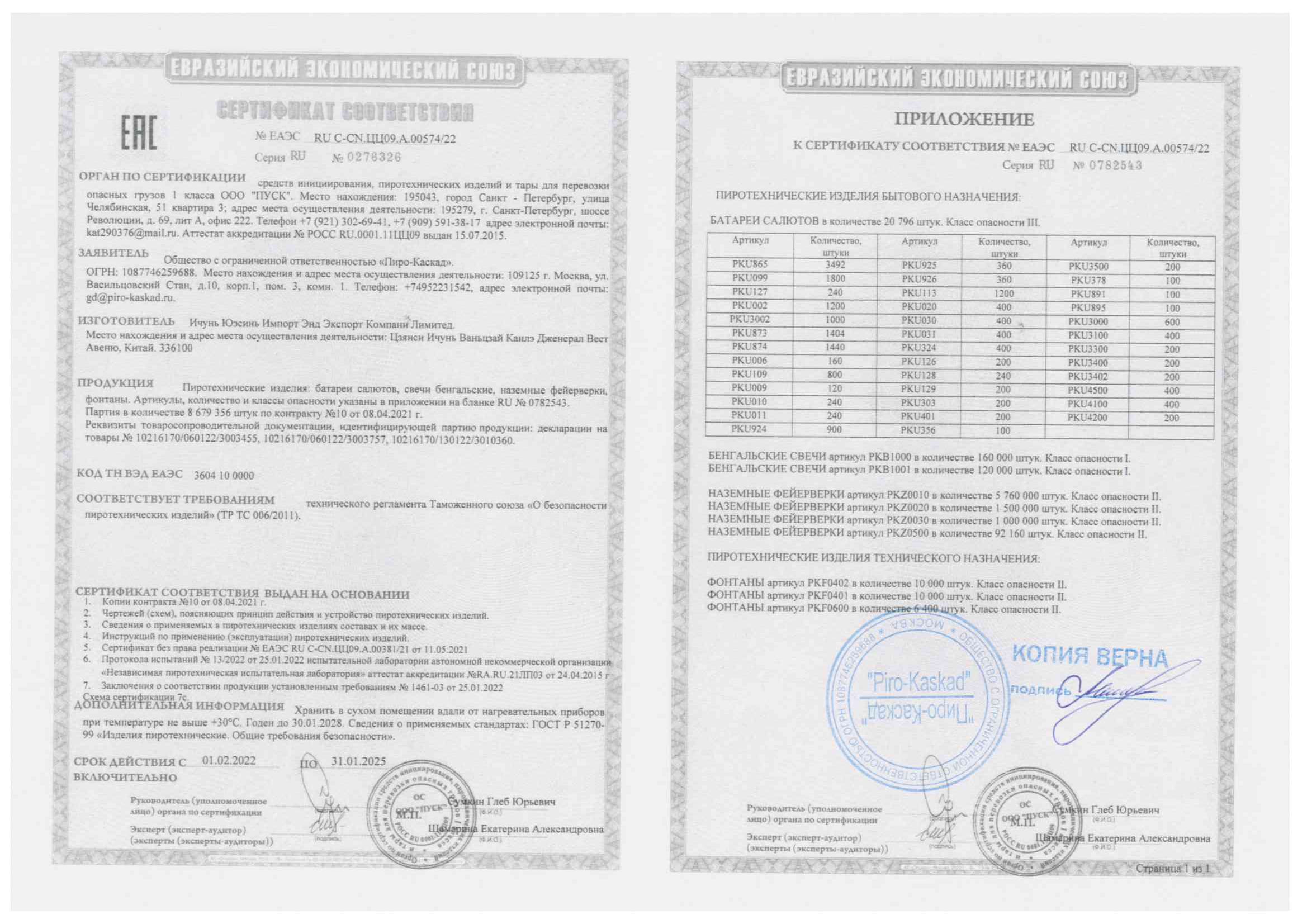 - К сожалению, мы не осуществляем доставку пиротехники в Калининградскую область, а также за пределы Российской Федерации.