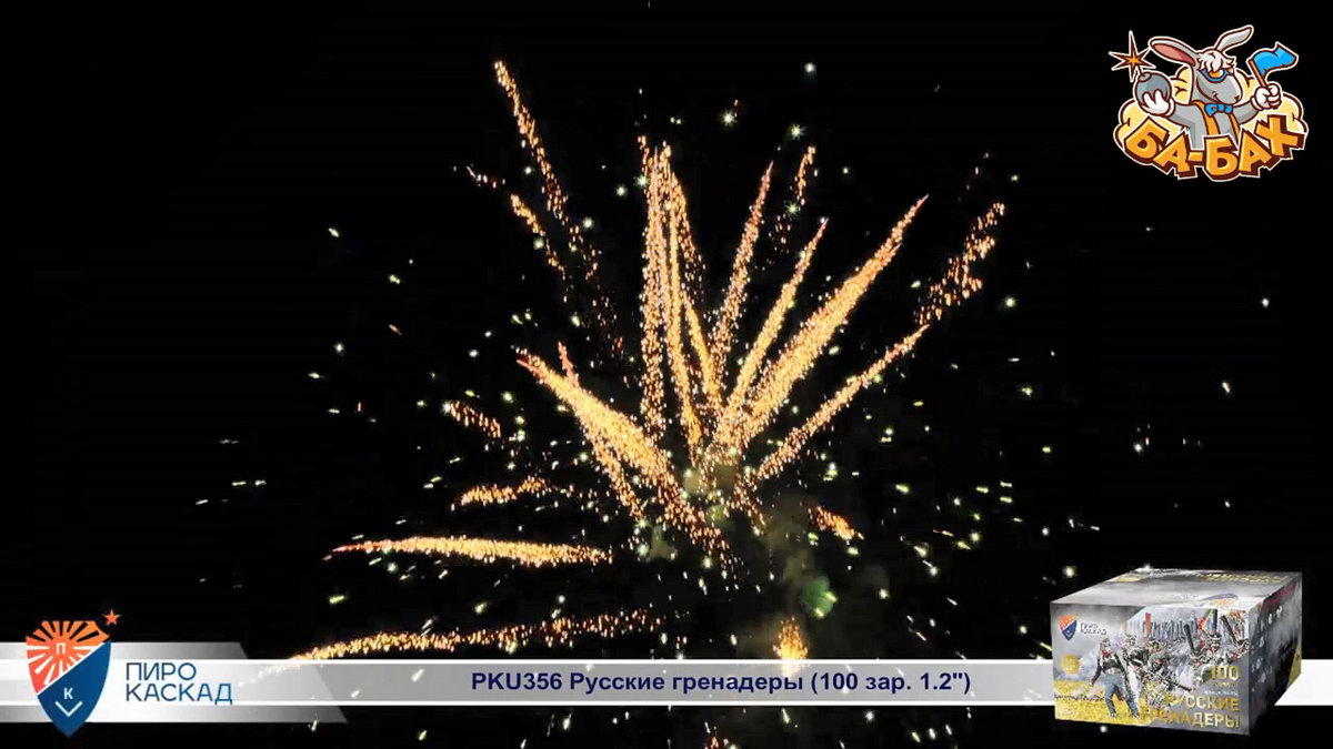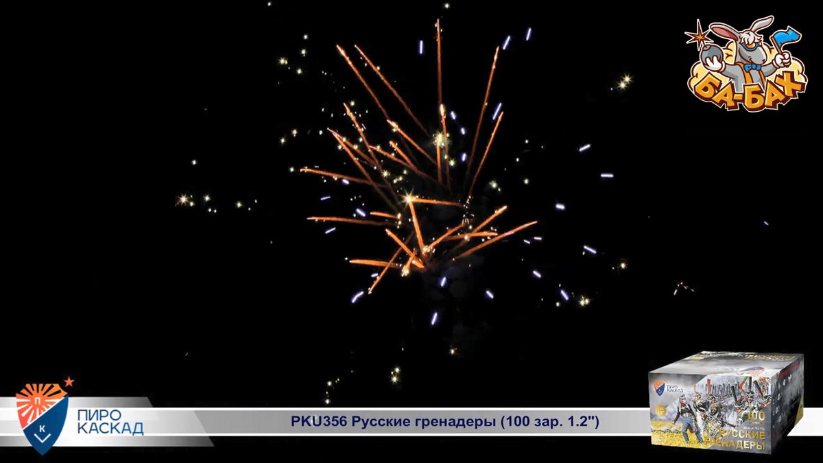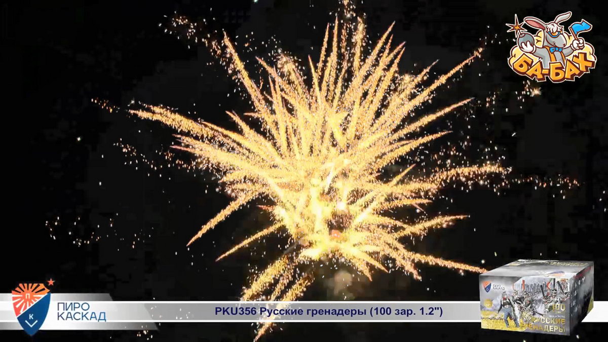 "Русские гренадеры" - лучшие из лучших, и в полной мере это относится и к одноименному фейервеку. Подборка спецэффектов: длиннохвостые красные кометы раскрываются красными и серебристыми трещащими сферами; зеленые цветы-георгины с серебристыми трещащими "пестиками"; ультрамариновые кометы раскрываются парчовыми коронами; зеленые кометы раскрываются мерцающими сферами; красные кометы раскрываются серебристыми пальмами с трещащими форсами; синие кометы раскрываются большими трещащими сферами. Новинка лета 2014 года!