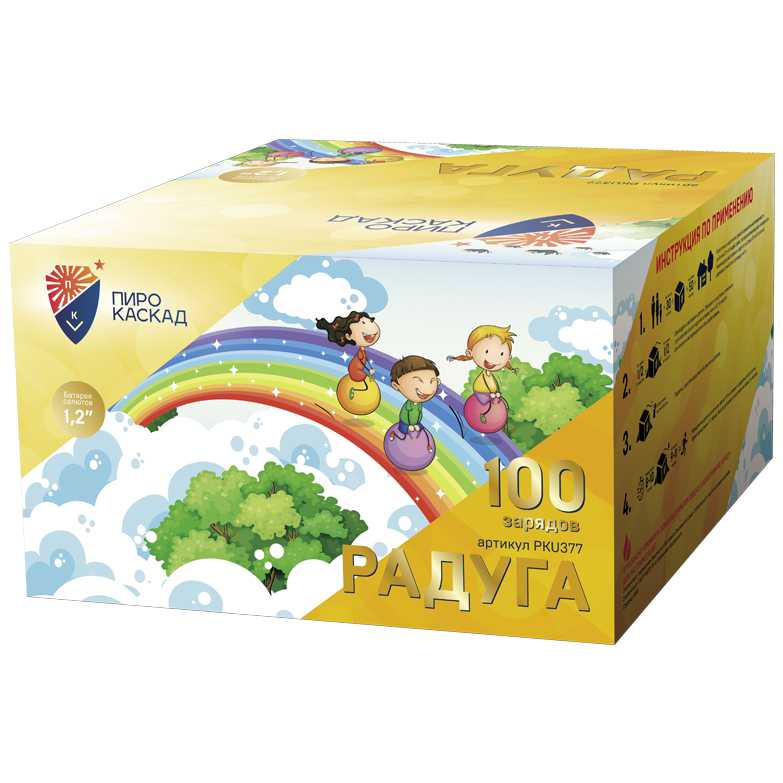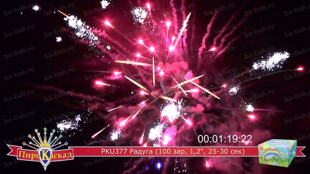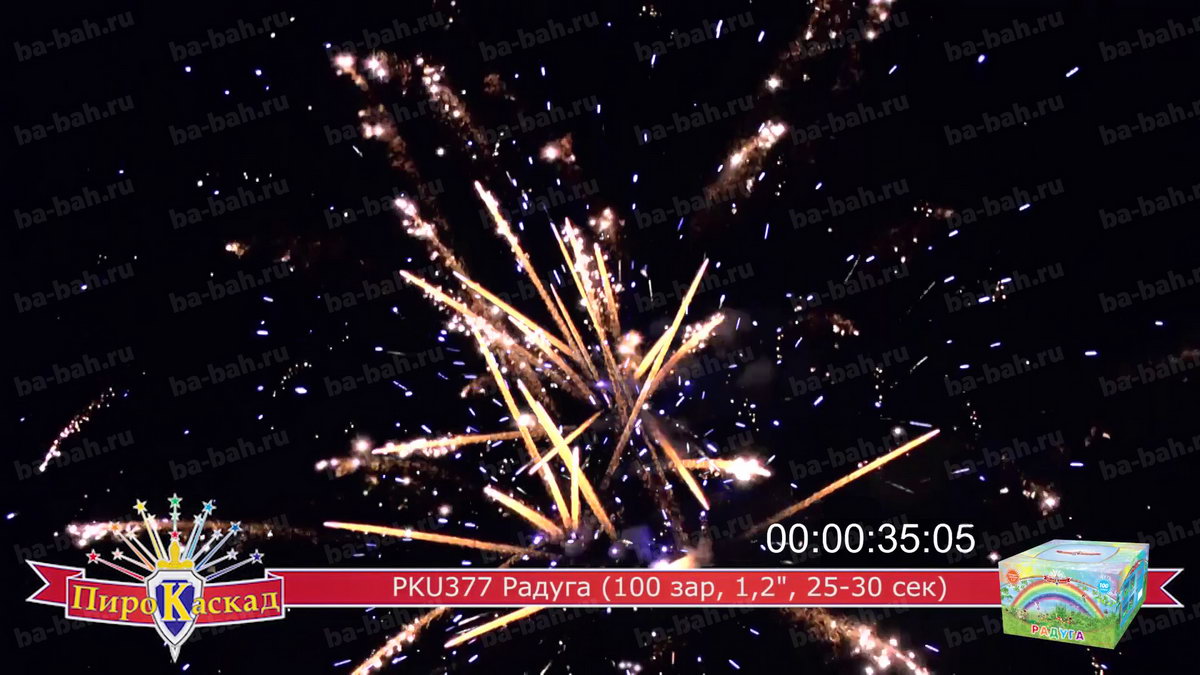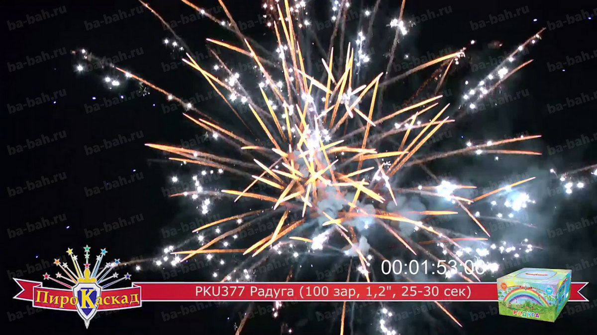 Видели ли вы когда-нибудь радугу... ночью? То, что может показаться фантастикой или сном, становится явью с новым фейерверком "Радуга"! 100 залпов, один ярче и мощнее другого, разукрасят ночное небо огненными зонтиками всех цветов. А красочная разноцветная коробка делает эту батарею салютов идеальным кандидатом для фейерверка на детский праздник или день рождения.