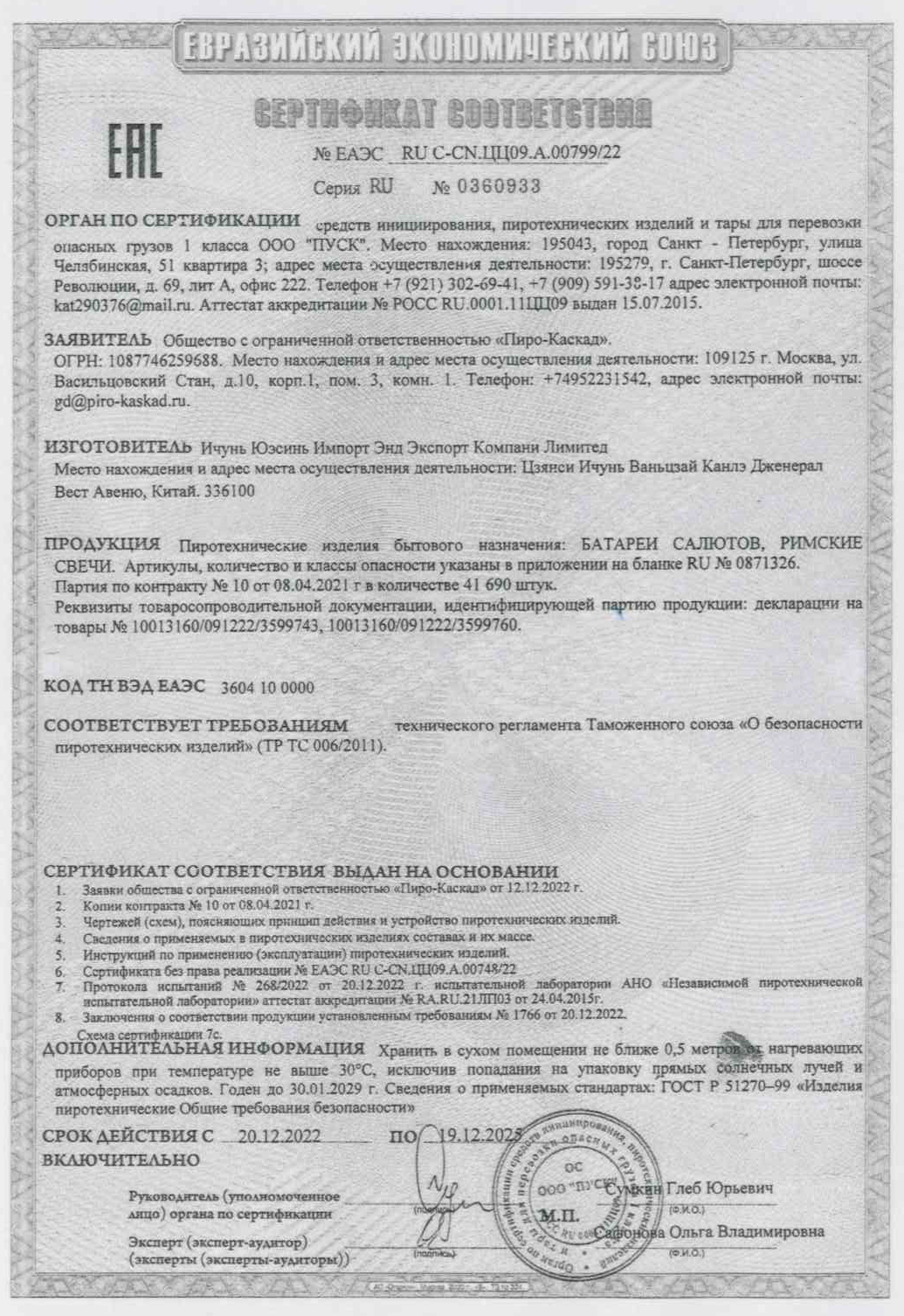Магазин фейерверков ББ-Салют предоставляет гарантию на весь ассортимент интернет-магазина и розничных магазинов ББ-Салют! Мы торгуем пиротехникой самых лучших, проверенных торговых марок. Все изделия сертифицированы для продажи на территории России и имеют актуальный срок годности.