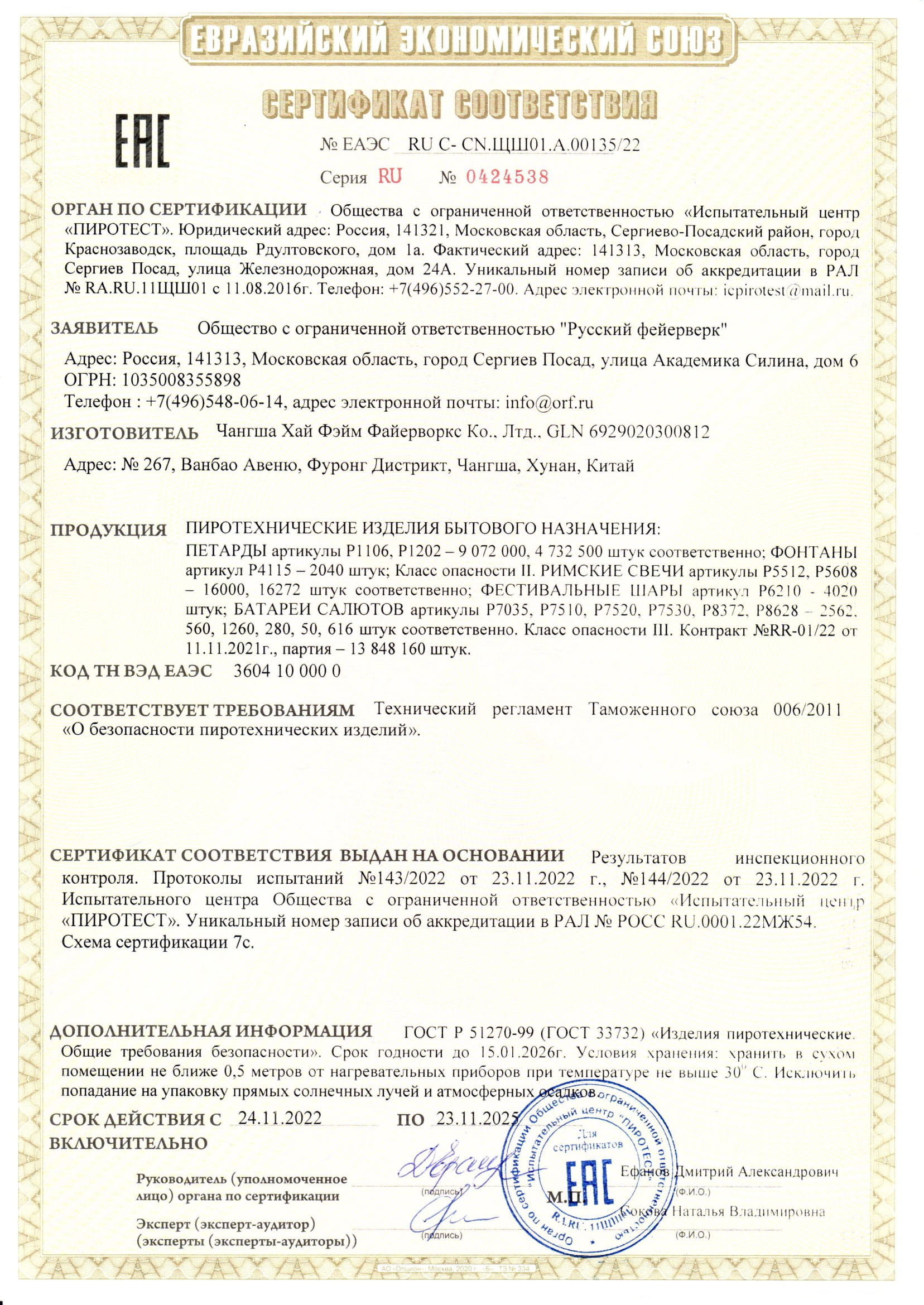 Магазин фейерверков ББ-Салют предоставляет гарантию на весь ассортимент интернет-магазина и розничных магазинов ББ-Салют! Мы торгуем пиротехникой самых лучших, проверенных торговых марок. Все изделия сертифицированы для продажи на территории России и имеют актуальный срок годности.