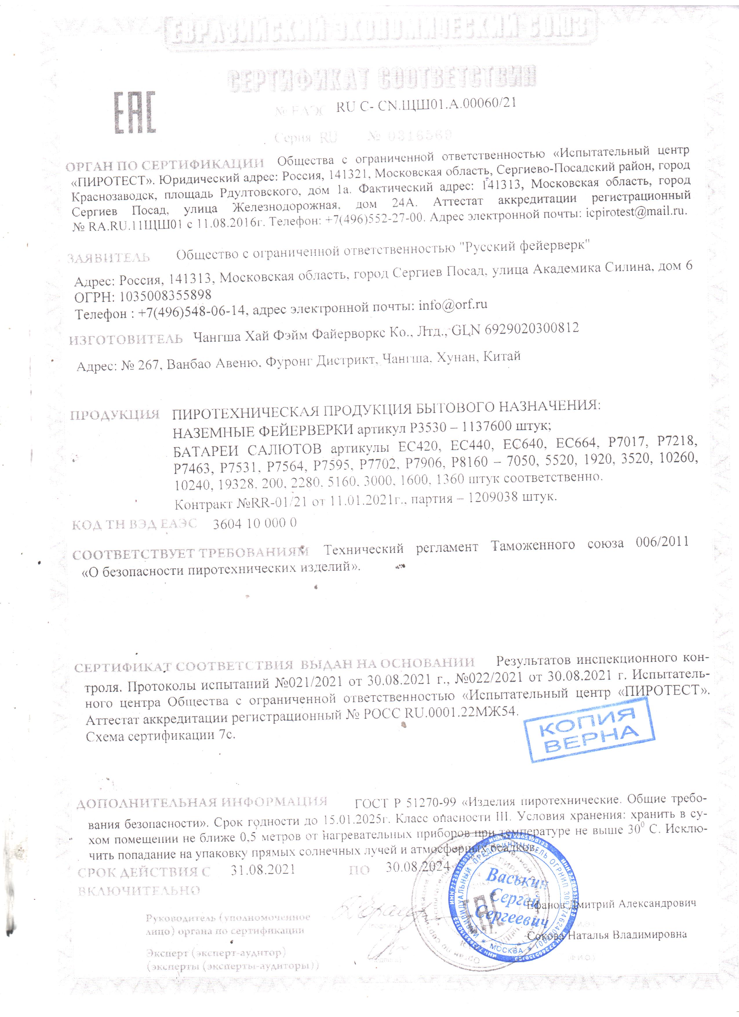 Магазин фейерверков ББ-Салют предоставляет гарантию на весь ассортимент интернет-магазина и розничных магазинов ББ-Салют! Мы торгуем пиротехникой самых лучших, проверенных торговых марок. Все изделия сертифицированы для продажи на территории России и имеют актуальный срок годности.