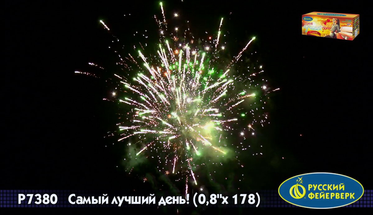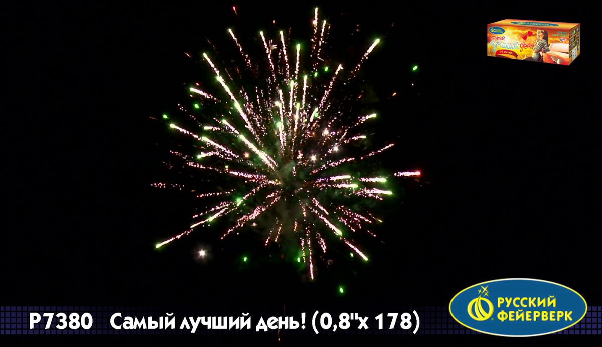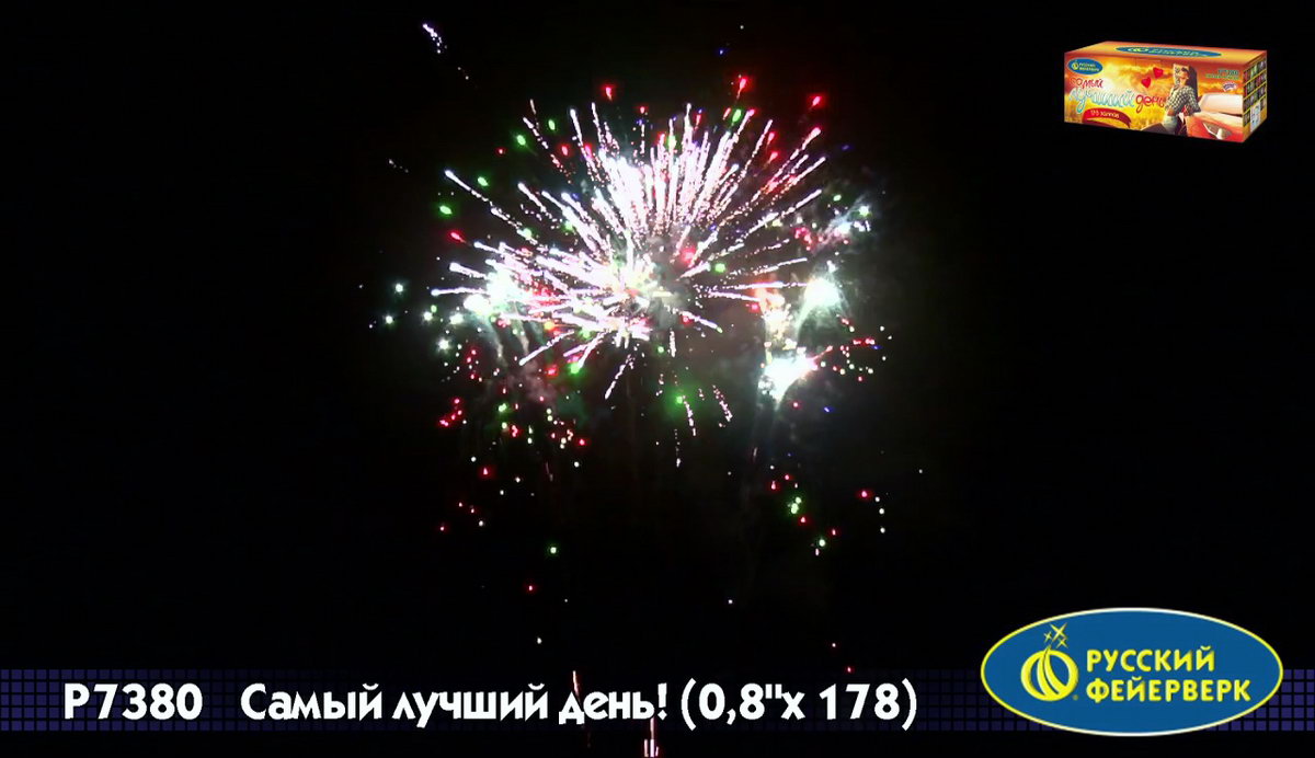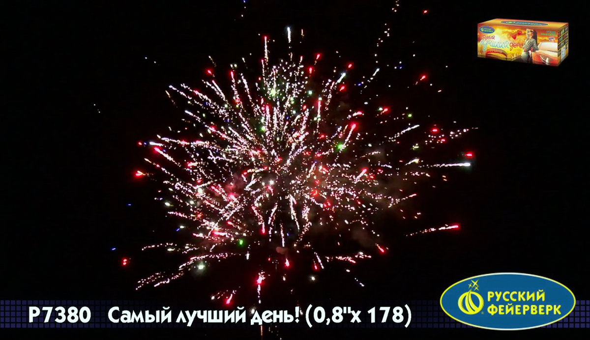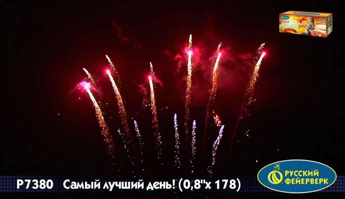 Масштабный, долгий - 178 залпов! - ни с чем не сравнимый салют превратит любой заурядный день в самый лучший! Грандиозная задумка мастеров - собрать все наиболее впечатляющие эффекты в одном изделии - увенчалась успехом. Особенно востребован этот фейерверк в случаях, когда торжество выходит за уровень обычных домашних, даже самых важных, торжеств. Чем так прельщает он своих поклонников? Традиционно, все салюты такого объема начинаются с небольших вступлений. На этот раз речь идет о небольших спокойных розовых кометах с перламутровыми шлейфами и бирюзовыми вспышками, нежно-зеленые кометы с перламутровыми шлейфами, но уже более отчетливым фоном трещащих золотых искр. Постепенно к каждому залпу добавляется по одному эффекту, по принципу снежного кома. Выстреливать начинают ярко-розовые, синие и зеленые огни с перламутровыми шлейфами и трещащими искрами, к ним добавляются трещащие перламутровые большие облака и золотые объемные вспышки. Так продолжается практически половину салюта. Потом этот бешеный темп стихает, и на сцене появляется новое действующее лицо - разноцветные рыбки, которые повисают в воздухе. Здесь стоит затаить дыхание. Веер из пушистых огненно-рыжих комет медленно поднимается. И все продолжается с новой силой. Но теперь уже первенство берут на себя перламутровые облака трещащих искр, изредка позволяющие разноцветным огням появляться в этой суматохе. И опять прекрасные, веселые, но теперь уже синие и белые рыбки и веерный ряд перламутровых комет. После небольшой тишины - вновь бойкие разноцветные кометы с белоснежными хвостами, с облаками золотых и белых щедрых трещащих облаков искр, бирюзового мерцания. Финал не предугадать. Он состоит из изобилия перламутровых комет, огненно-рыжих нитей и оглушительного шума от неугомонных шипящих искр. Этот салют - как голливудский блокбастер, долгий и продуманный, со спецэффектами, которые заставят любого затаить дыхание!