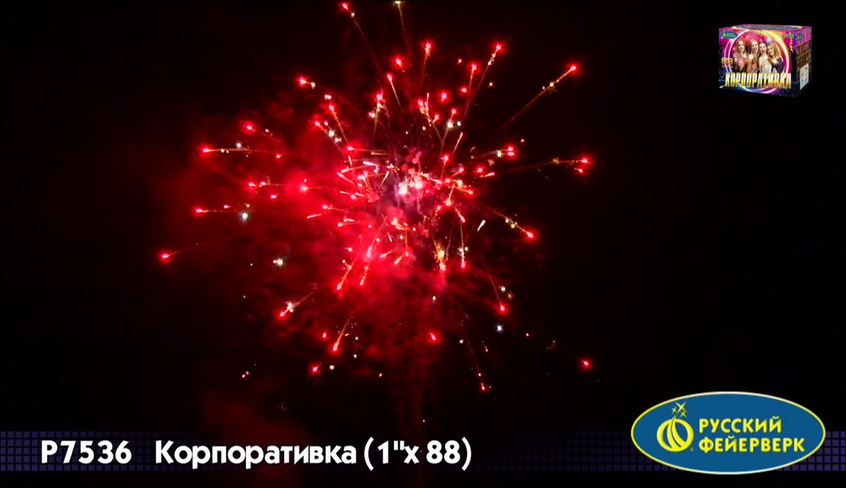 1. Эффектов. Выстреливает подряд: Красно-сине-желтая сфера (пион) и белое мерцание. 2. Красная сфера (пион) и облако трещащих разрывов (трещащая хризантема). 3. Красно-зелено-фиолетовая сфера (пион) и белое мерцание. 4. Красные звезды с пышными хвостами (кокос) и облако трещащих разрывов (трещащий дождь). 5. Уровня: Вверху - серебряные хаотично разлетающиеся звезды (рыбки) и синие звезды. Внизу - мерцающий букет. 6. Уровня: Вверху - множество серебряных ниспадающих нитей (парча) и красное мерцание. Внизу - трещащий букет. 7. Красные кометы. 8. Сфера золотых хвостов с переходом в красно-синие звезды (цветная хризантема) и золотое мерцание. 9. Множество серебряных ниспадающих нитей (парча) с зелеными и фиолетовыми звездами на концах. 10. Красно-зелено-фиолетовые звезды с пышными хвостами (кокос) и облако трещащих разрывов (трещащая хризантема). 11. Красочная концовка. Выстреливает подряд: свистящие змейки, красные шуршащие разлетающиеся кометы (паучки).