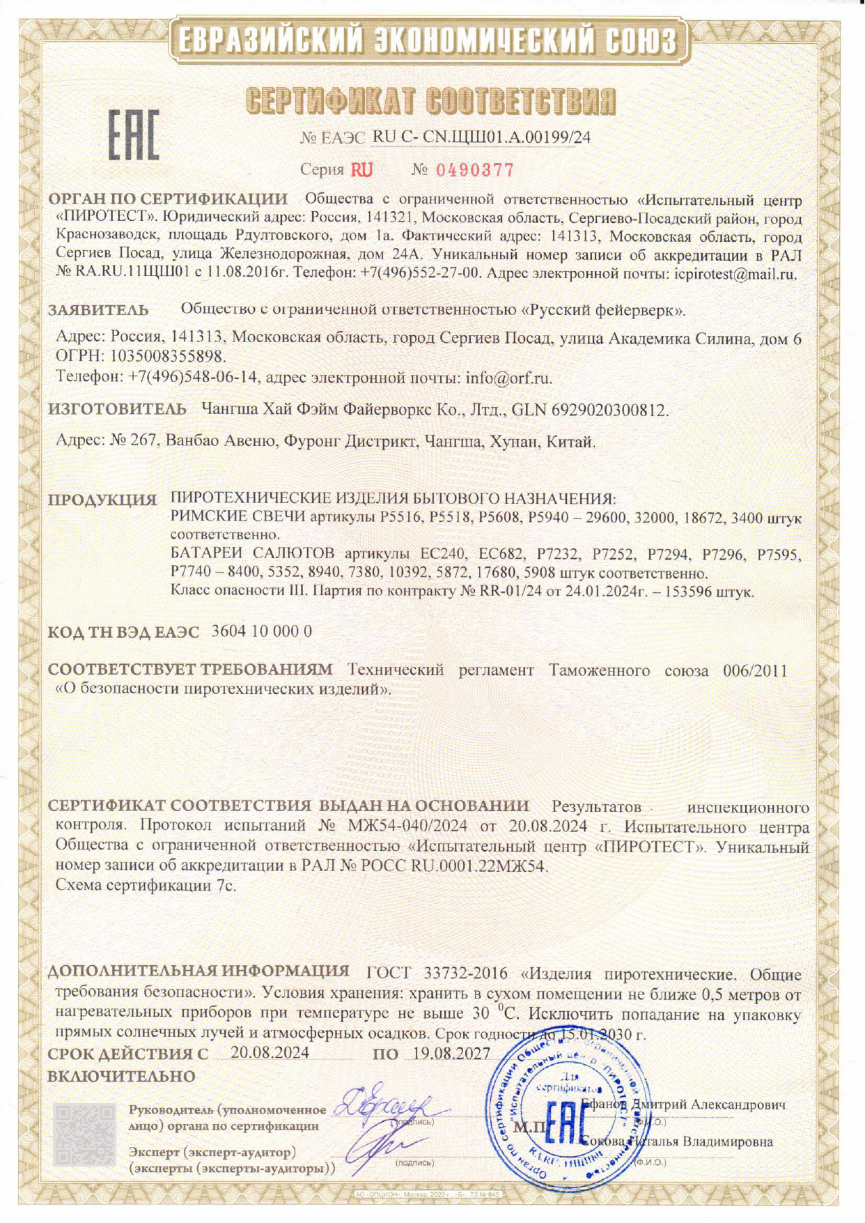 - К сожалению, мы не осуществляем доставку пиротехники в Калининградскую область, а также за пределы Российской Федерации.