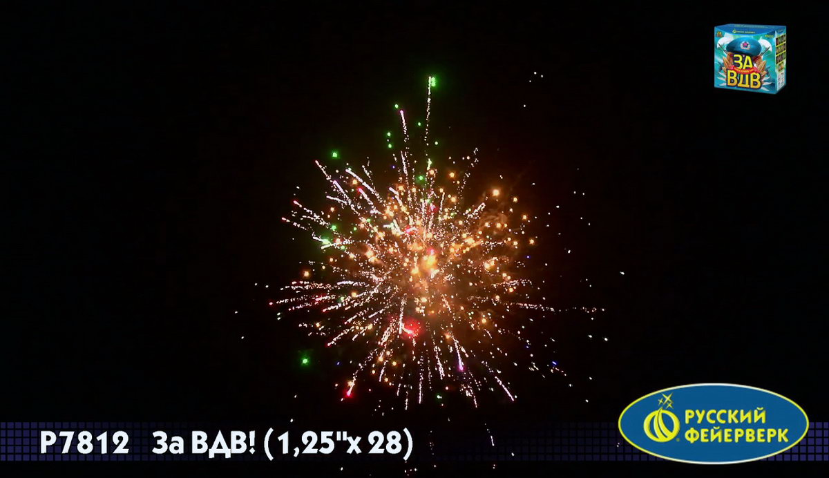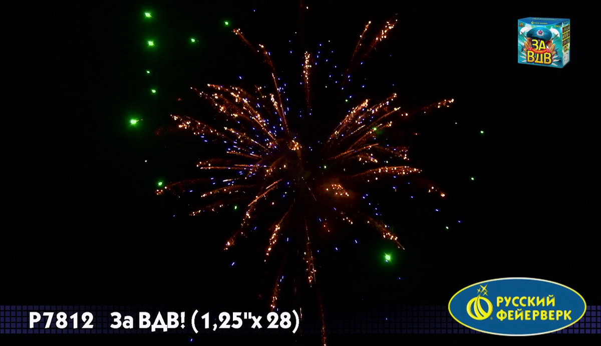 Все приветствуем Воздушно-десантные войска! Спасибо Вам и низкий поклон! Оцените работу отечественной пиротехнической артиллерии. Будем надеяться, что праздничная артподготовка придется Вам по душе. Высадка пиротехнического десанта не дает ни единого шанса врагу: динамичные быстрые огненные выстрелы огромных масштабных небесных действий, разноцветные парашюты рыжих, синих, зеленых, бледно-голубых огней и бирюзового сияния. Сфера сиреневого, зеленого, желтого цвета заполнят все небо, от края до края, своими мощными разрывами. И, конечно, цветы в честь Единственной, ждущей дома: белоснежные бутоны с синими и розовыми колокольчиками, перламутровые лилии с зелеными огоньками, медные, с золотым блеском пальмы и множеством трещащих искр. И следующий залп - это светло-сиреневые кометы в окружении малиновых и лимонных огней, за которой следует череда огненно-рыжих тонких стрел с синими огнями, мерцающие рыжие пальмы с зелеными звездами, воздушный залп разноцветных огней, быстро переходящий в перламутровое трещащее облако пушистых искр. Это не просто фейерверк - это настоящая поэма в стихах героям-десантникам!