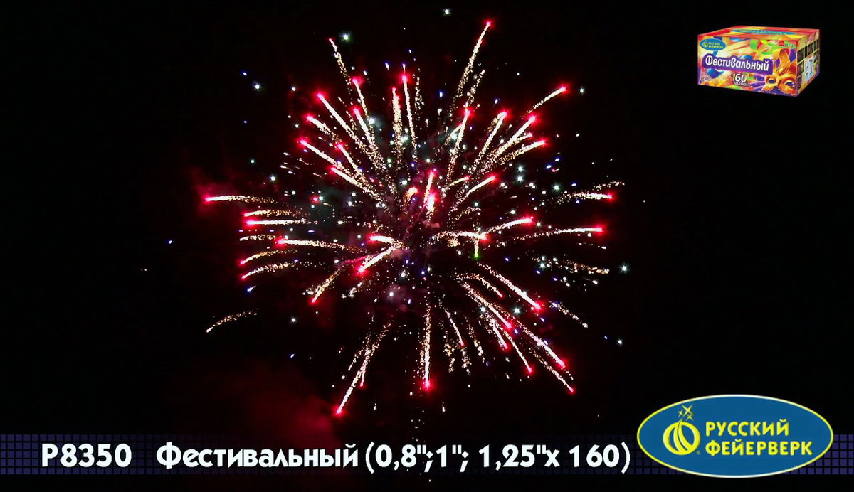 Устроим большой фестиваль красок, шума и веселья и пригласим друзей порадоваться вместе с нами. Прятать такое сокровище нельзя! Поделитесь им с близкими людьми. Он великолепен нежными белоснежными змейками, которые разрываются пушистыми хвостами розовых комет, фиолетовых и розовых огней, нежного мерцания, зелеными кометами с перламутровыми нитями и сиреневыми звездами. Этот сочетание повторяется несколько раз, чтобы зритель подготовился к предстоящему взрыву изобилия красок и шума. Дальше следуют белоснежные пальмы с розовыми и фиолетовыми, зелеными огнями, огненно-рыжие стрелы и алое мерцание. А теперь наберите больше воздуха. Масштабный веерный салют из белоснежных объемных залпов, а в центре - трещащие искристые перламутровые пальмы с гранатовыми плодами из огней. Сферы из медных искристых стрел и изумрудного мерцания переходят в шикарный торжественный залп. Сиреневые тонкие стрелы с зелеными и фиолетовыми огнями, и пронзительные алые и синие сферы, розовые и зеленые звезды с искристым белоснежным фоном. И опять веер белоснежных и перламутровых фонтанов. Радуга первого залпа и свистящие проказницы с пронзительным криком. И в финале - захватывающее перламутровое облако искр и разноцветных огней. Фестиваль фейерверков во всей своей красе!