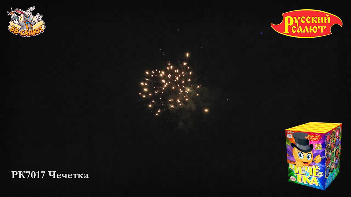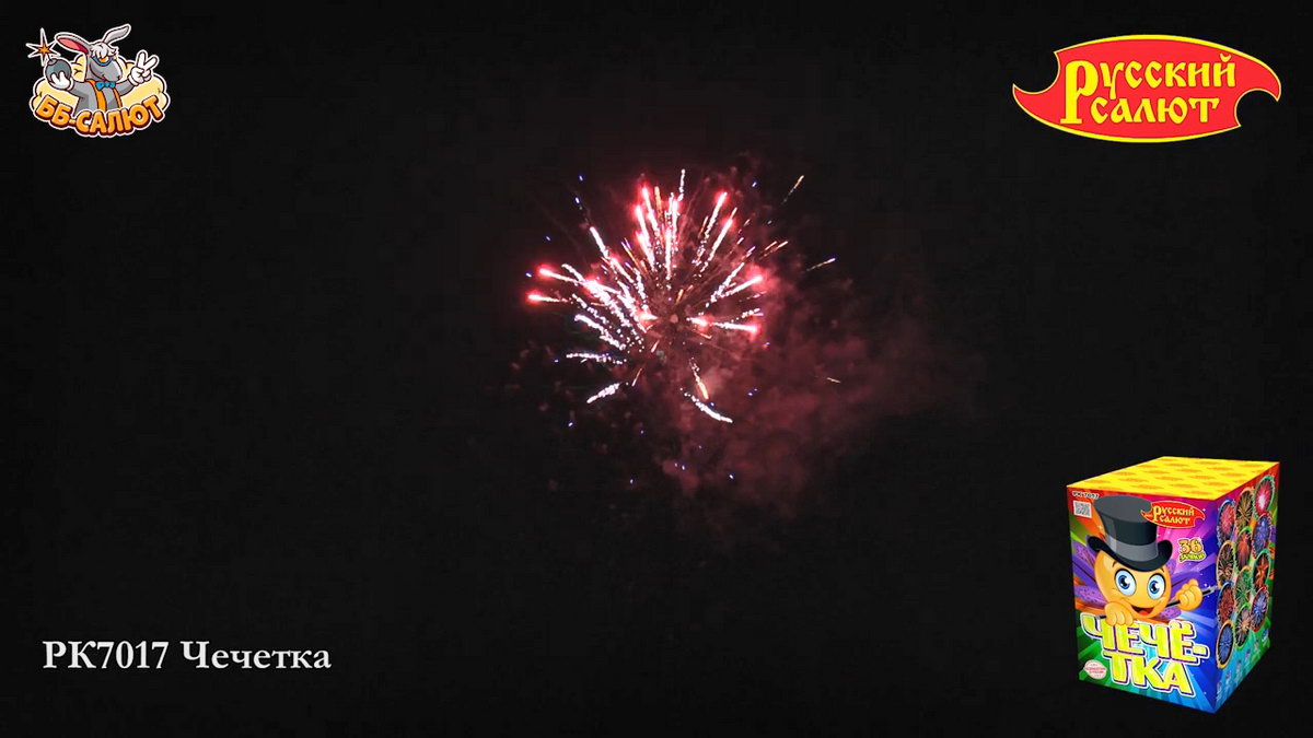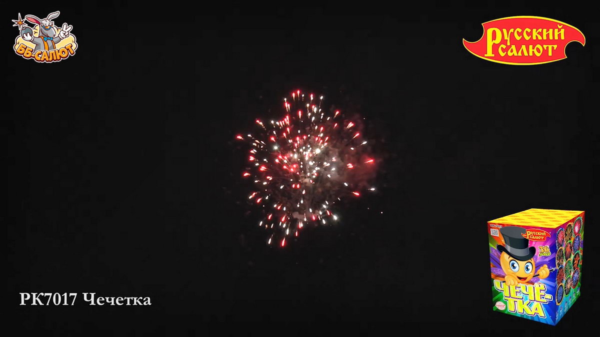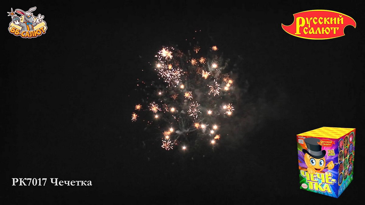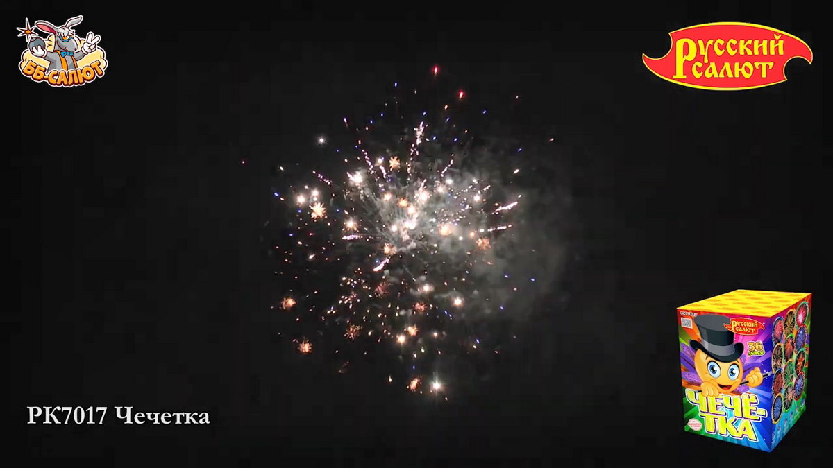 В фейерверк Чечетка входят 36 залпов, которые поднимутся на высоту 20 метров. Время работы 50 секунд! Этого вполне достаточно, чтобы посмотреть веселый салют. Он включает в себя пять разных эффектов. Каждая комета, взлетающая в небо, оставляет после себя тысячи разноцветных искр. Зрители увидят зеленые трещащие звезды, красные блестки с красивыми крупинками бисера, трещащие звезды, медленно гаснущие в ночи, синие звезды в большом трещащем облаке. В финальном залпе раскроются любимые мерцающие пионы и тысячи трещащих хризантем.